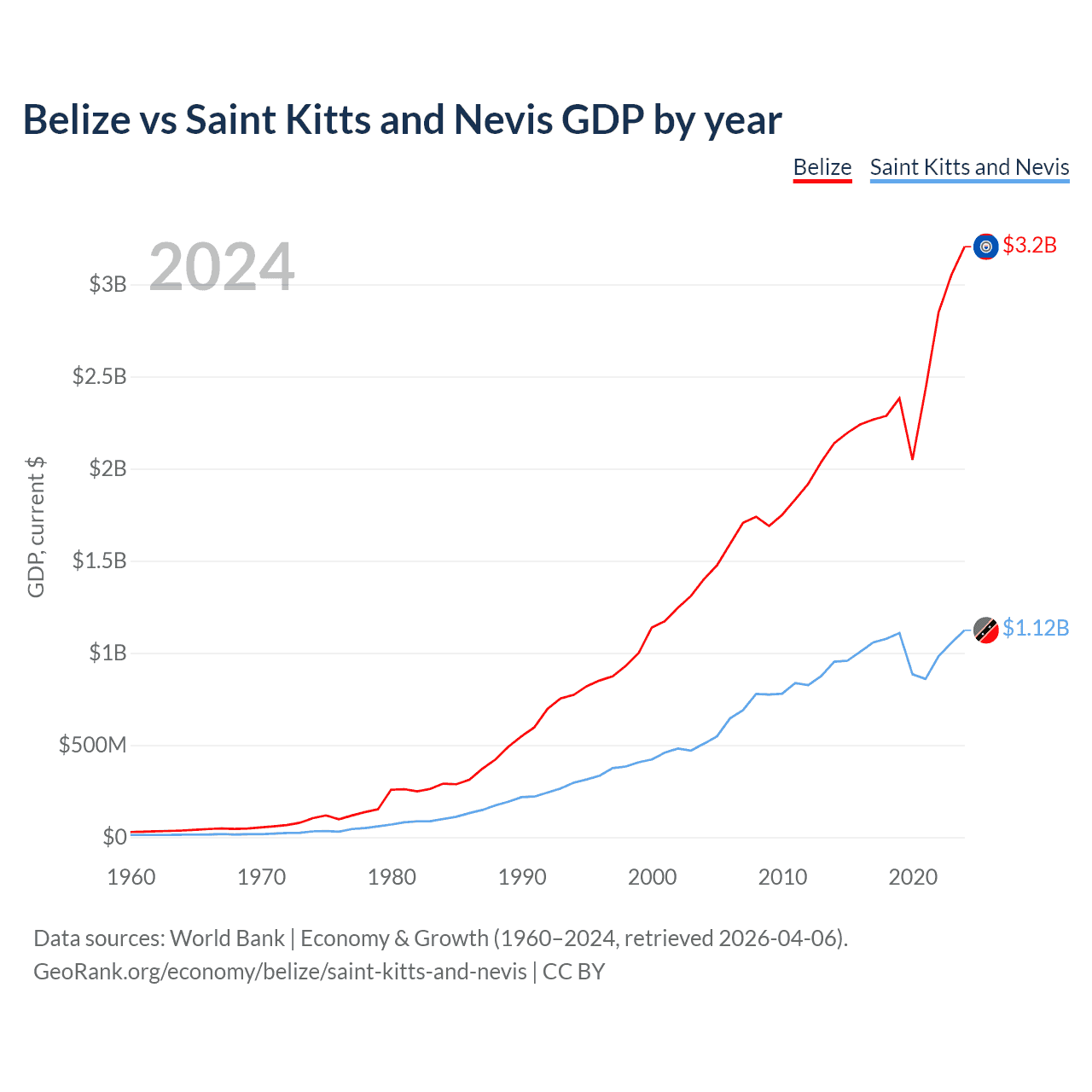 Belize vs Saint Kitts and Nevis GDP by year