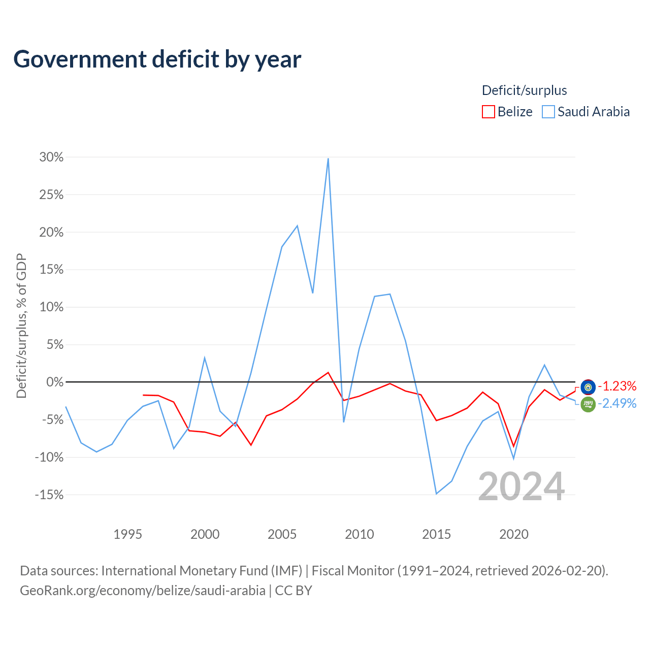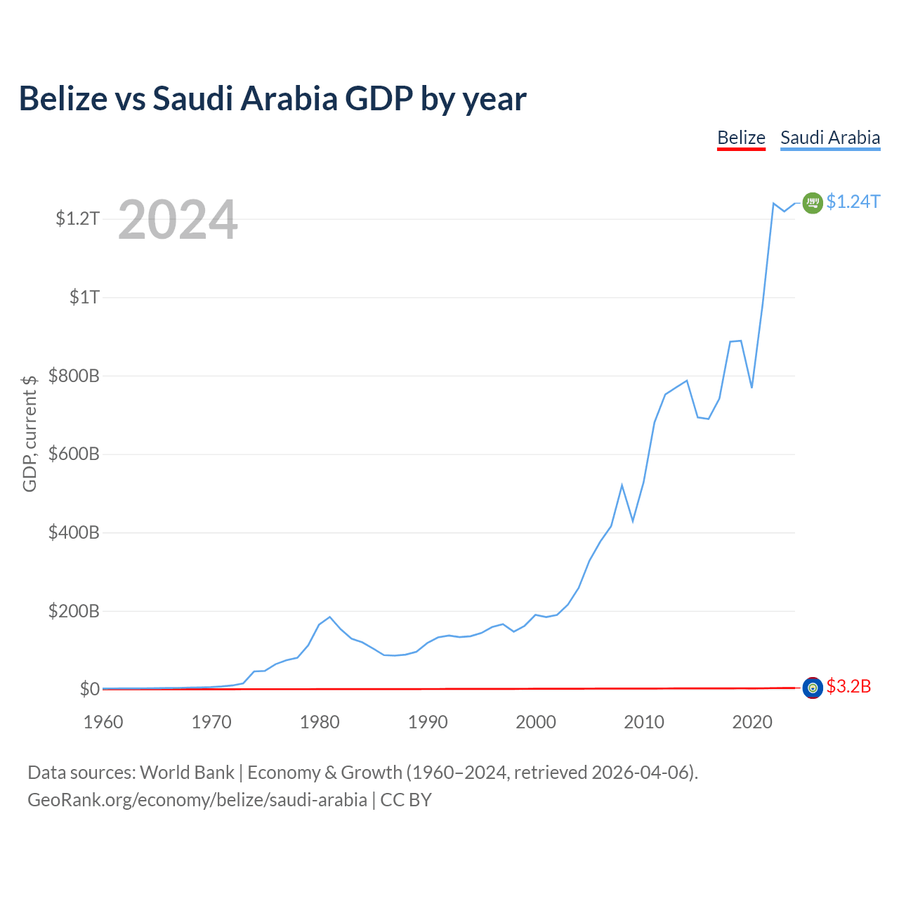 Belize vs Saudi Arabia GDP by year