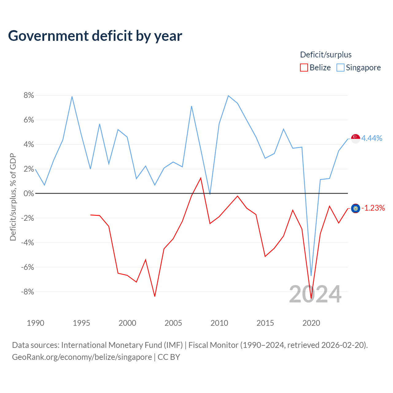 - International Monetary Fund (IMF) | Fiscal Monitor (1990–2024, retrieved 2026-02-20)