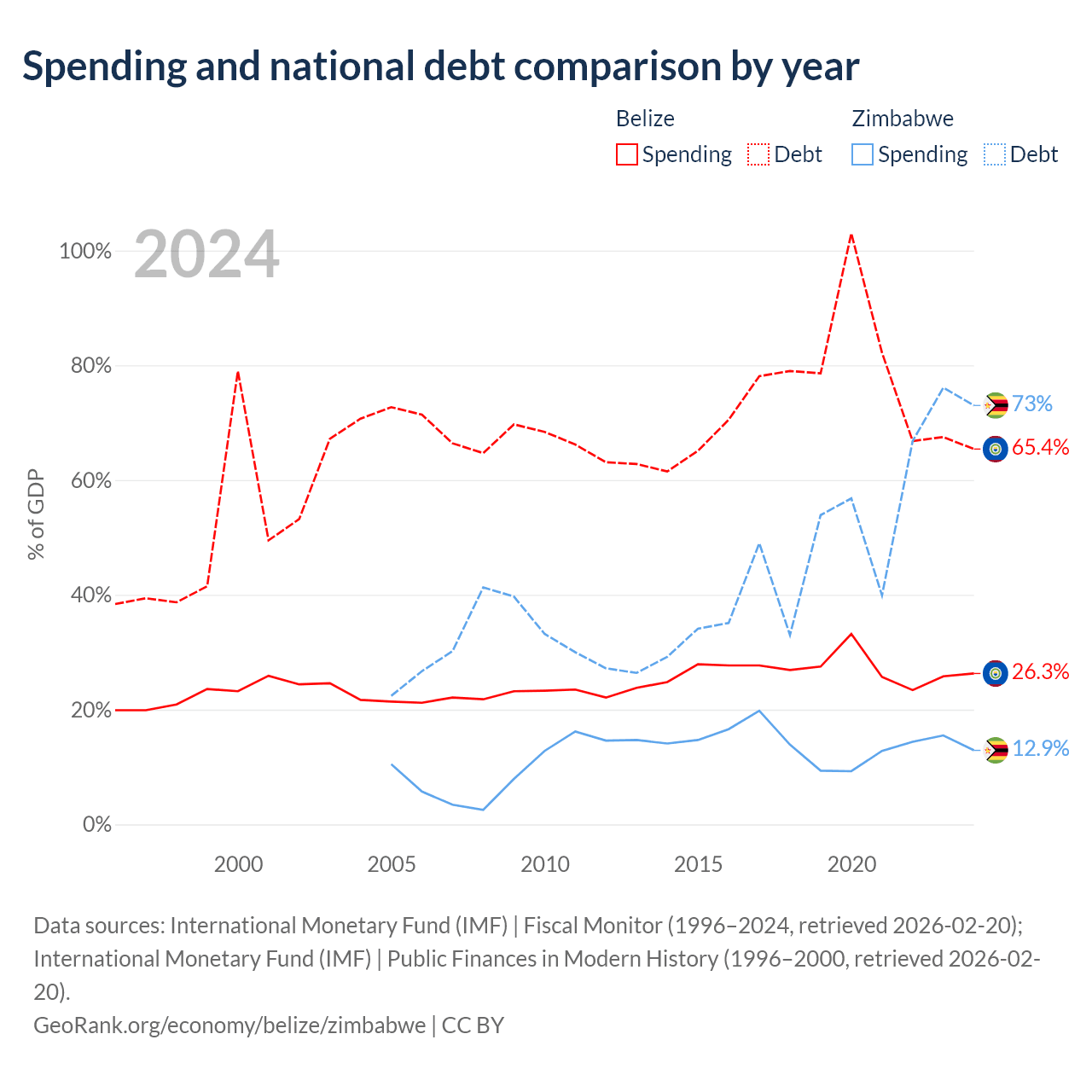 Belize has $2.1B in government debt (65.4% of GDP), compared to $30.3B (73% of GDP) in Zimbabwe.