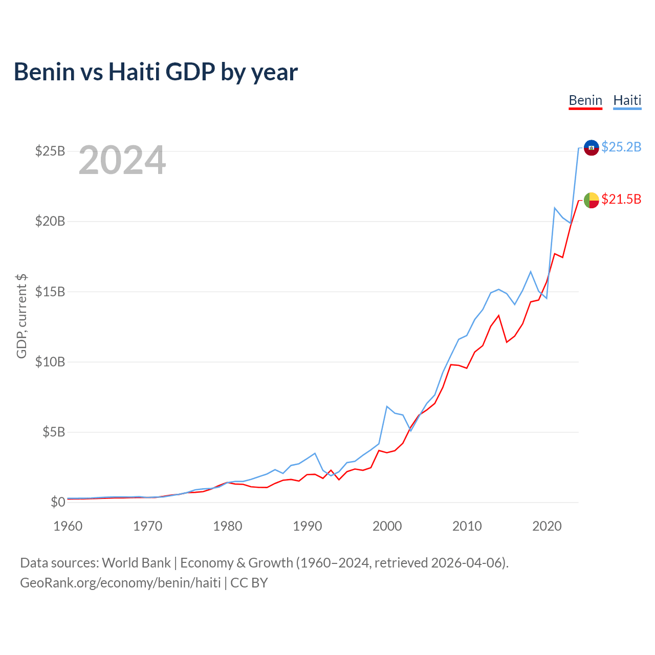 Benin vs Haiti GDP by year