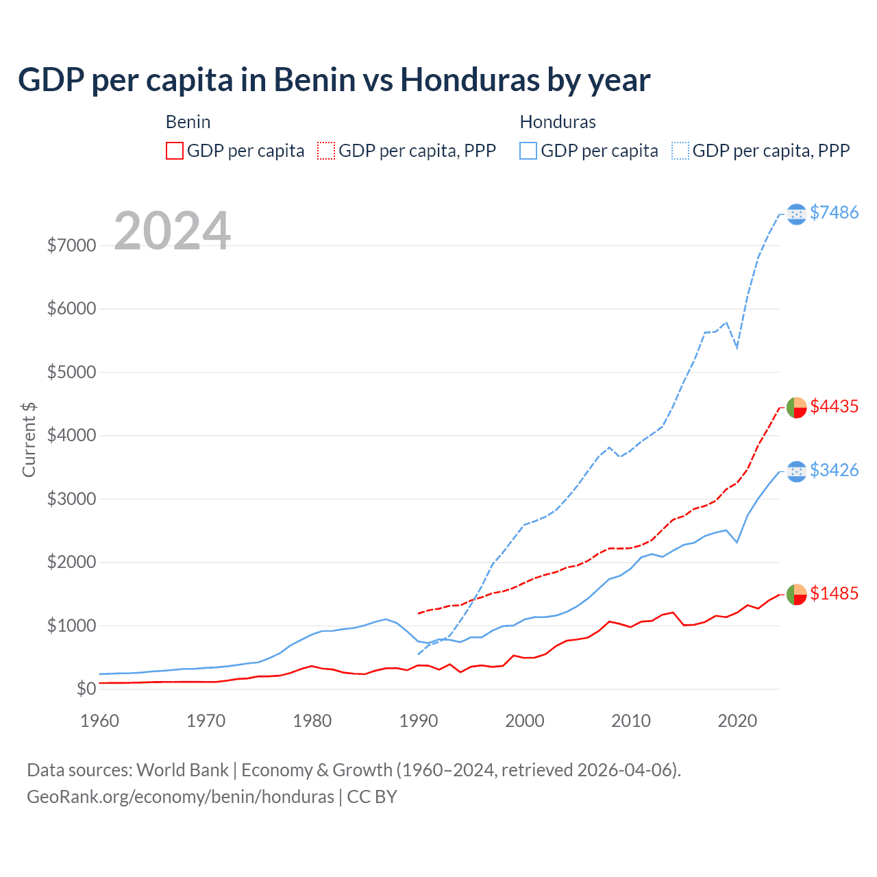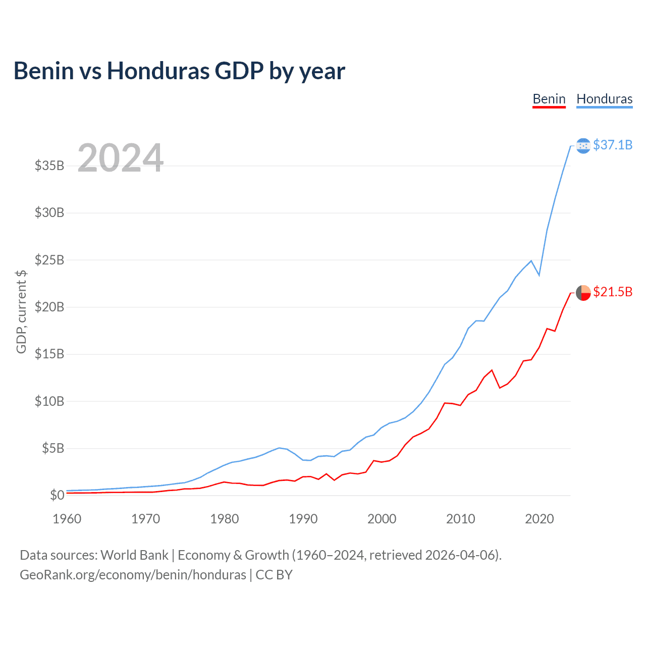 Benin vs Honduras GDP by year