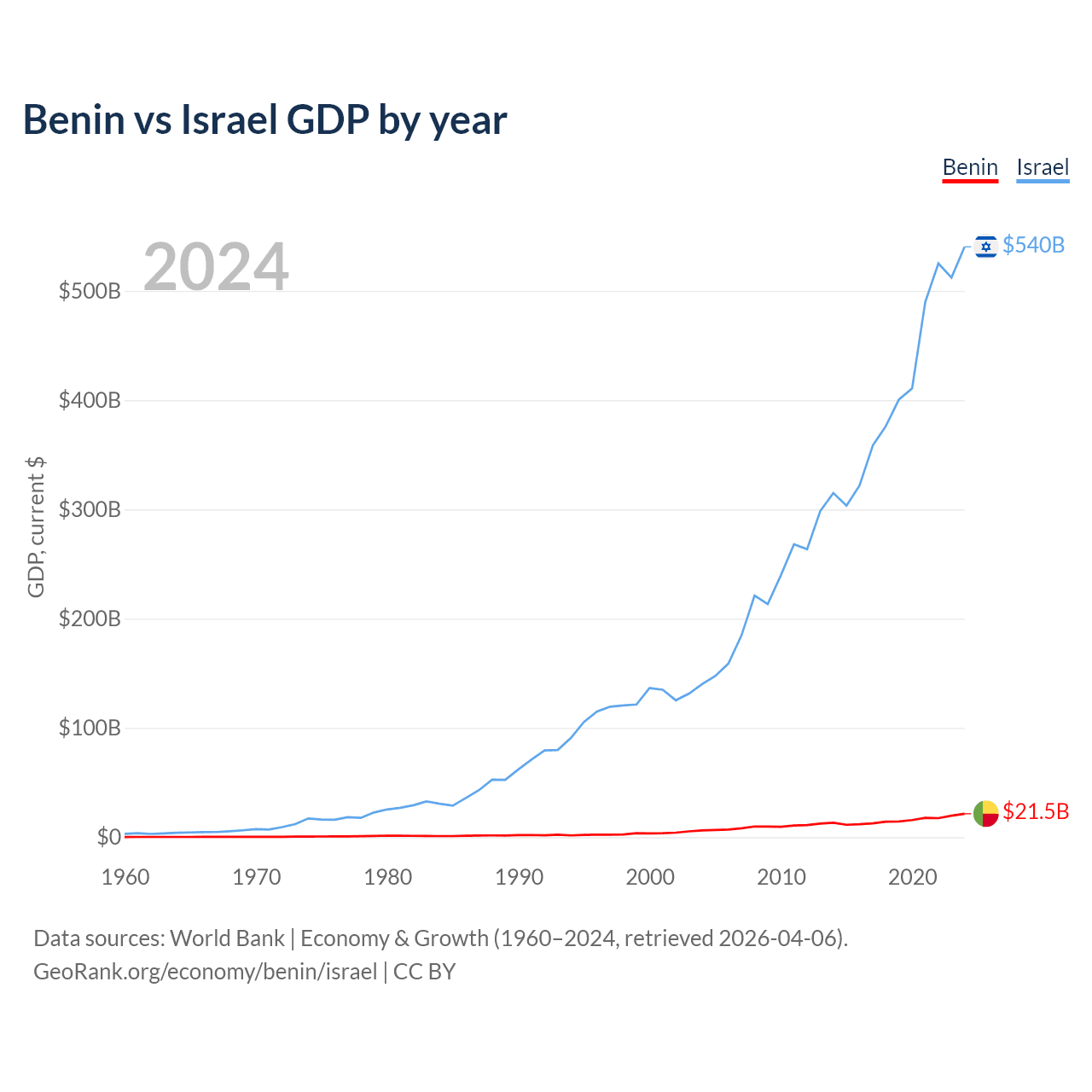 Benin vs Israel GDP by year