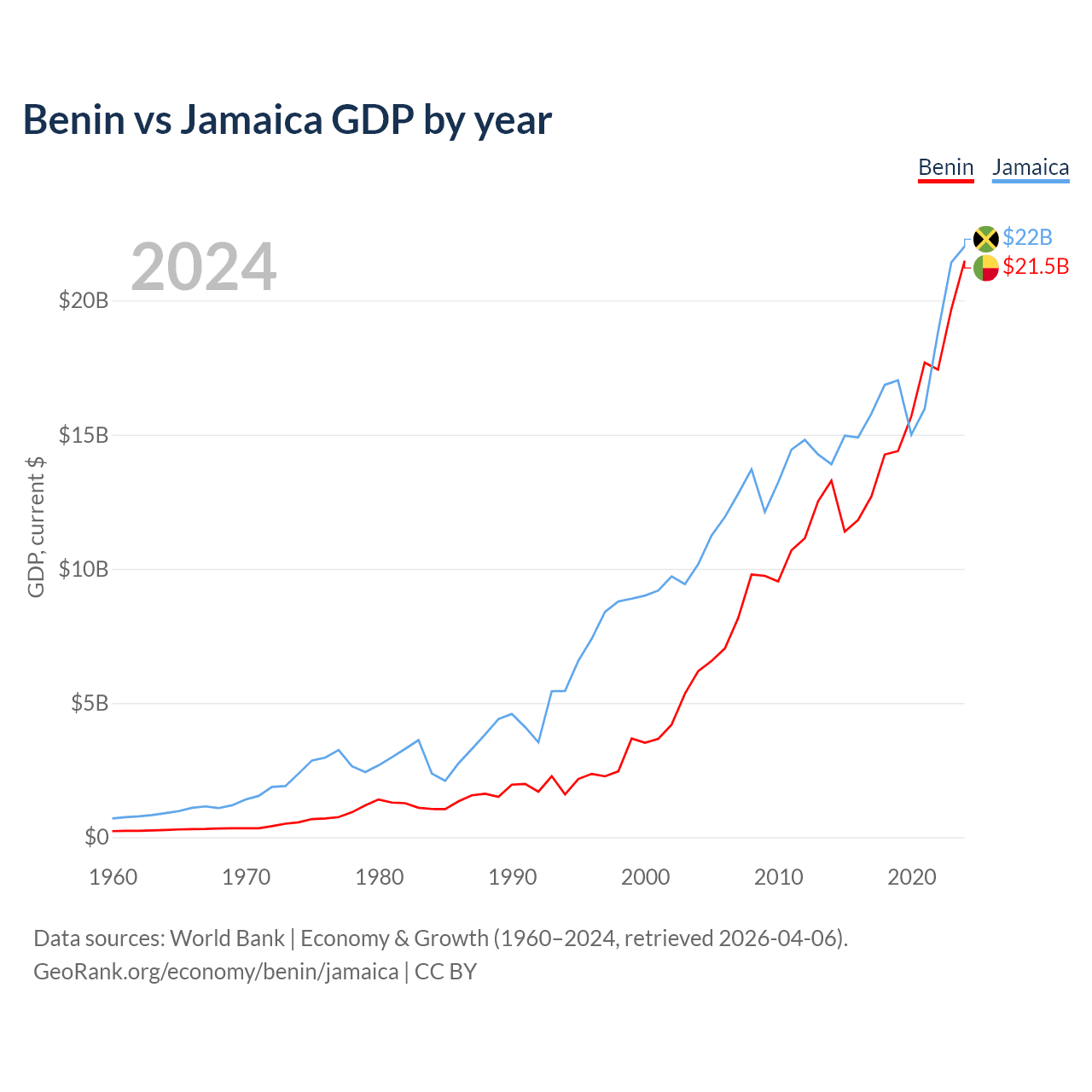 Benin vs Jamaica GDP by year