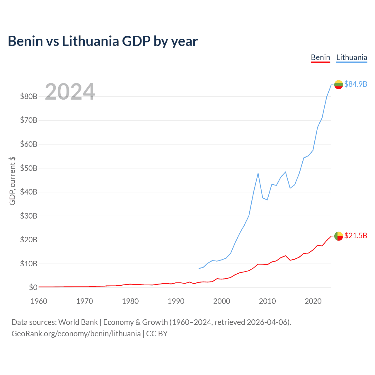 Benin vs Lithuania GDP by year