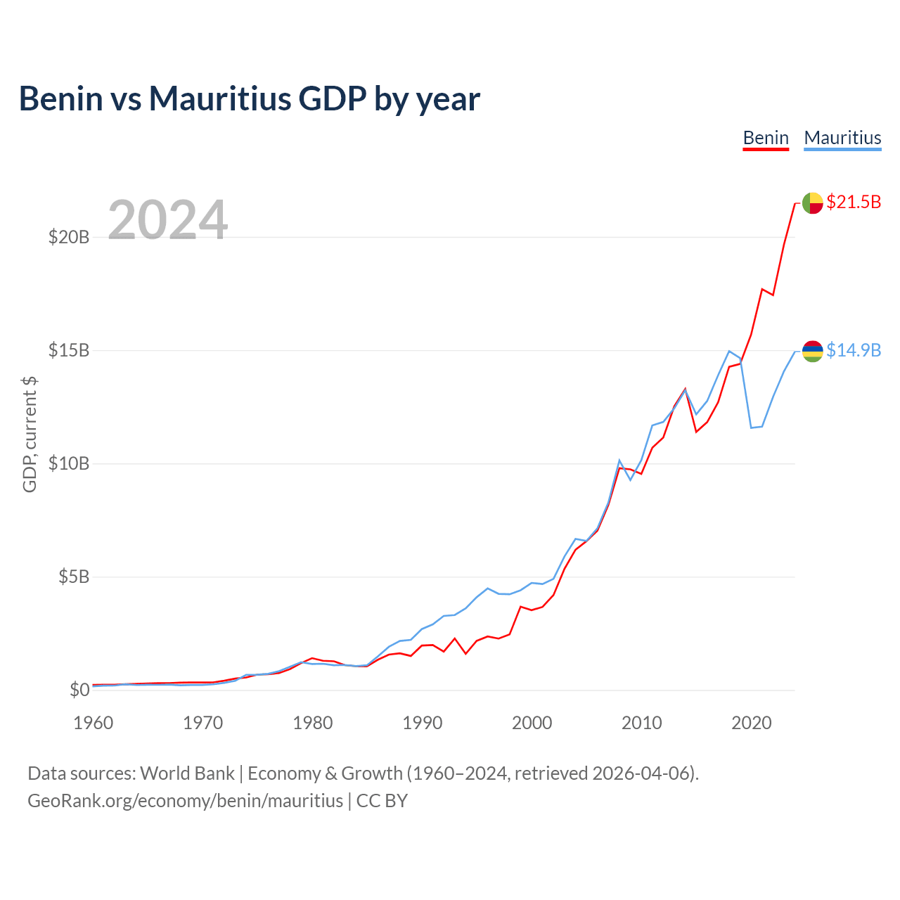 Benin vs Mauritius GDP by year