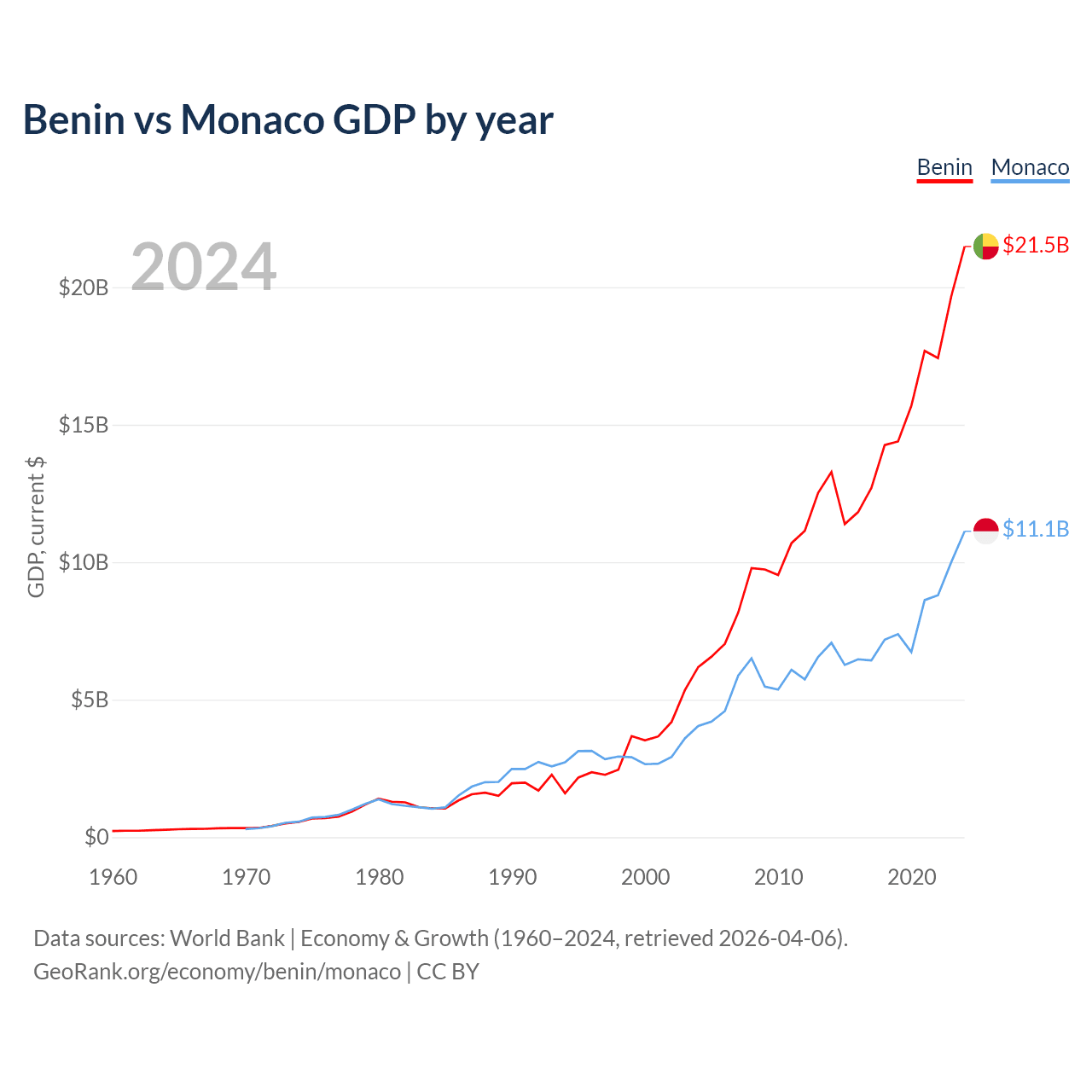 Benin vs Monaco GDP by year