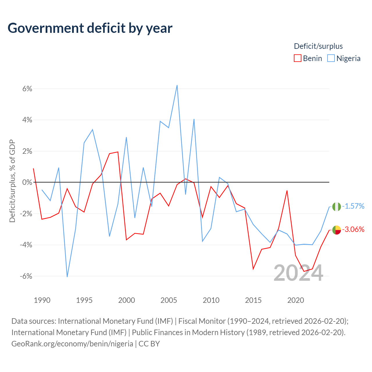 - International Monetary Fund (IMF) | Fiscal Monitor (1990–2024, retrieved 2026-02-20)