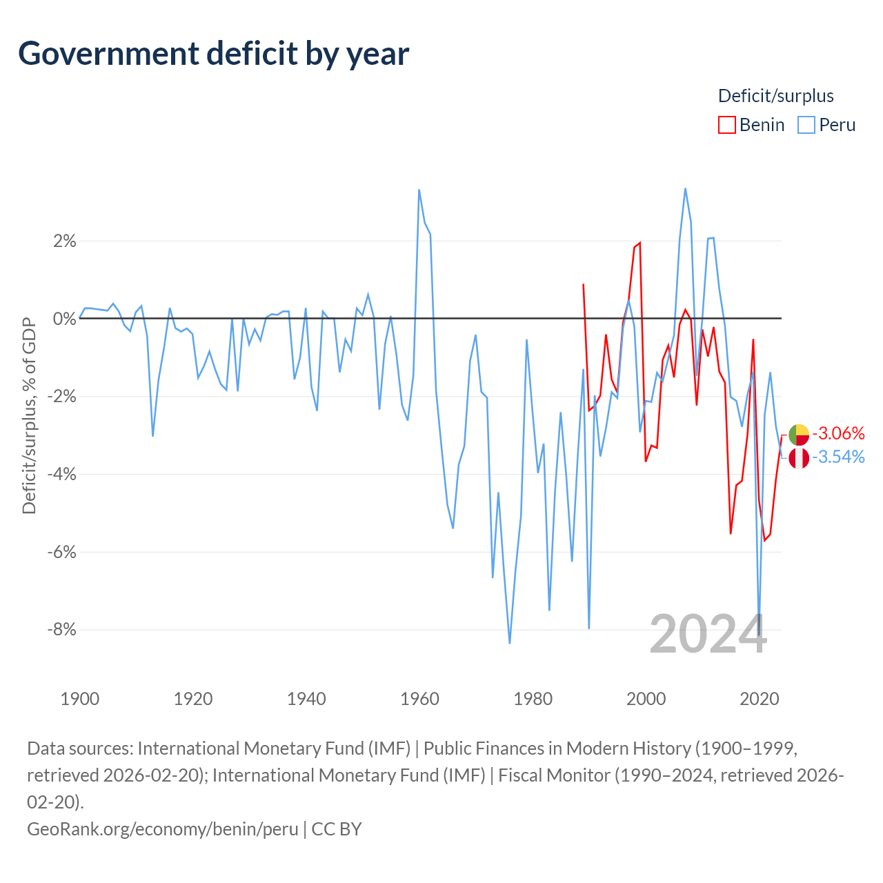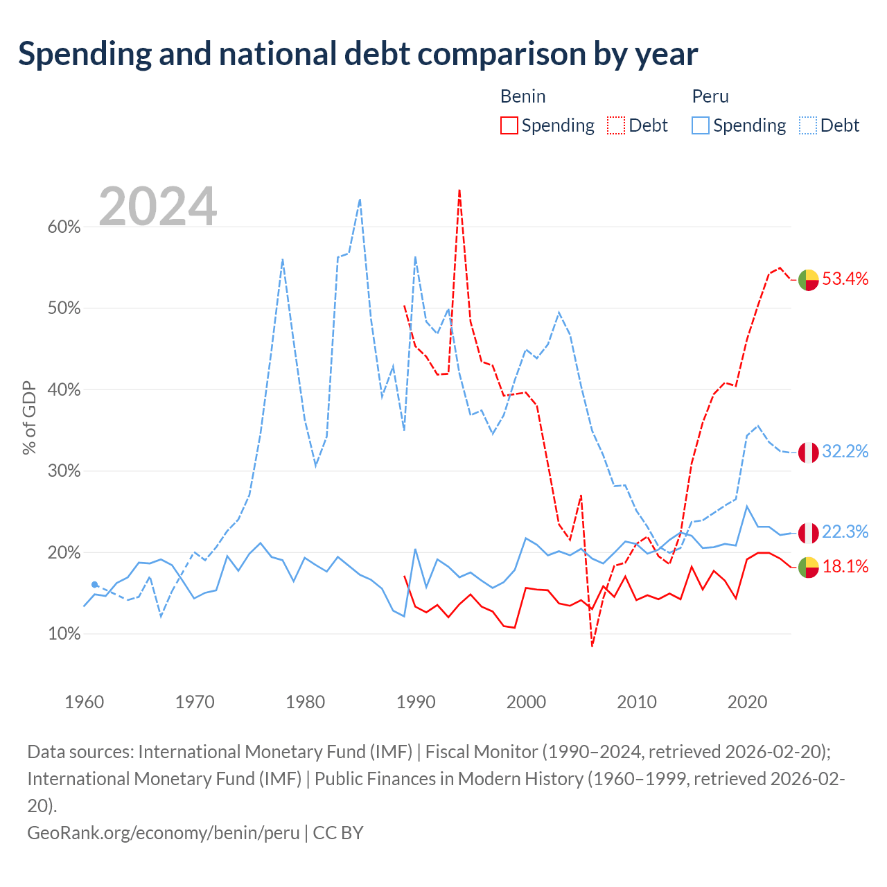 Benin has $11.5B in government debt (53.4% of GDP), compared to $93B (32.2% of GDP) in Peru.