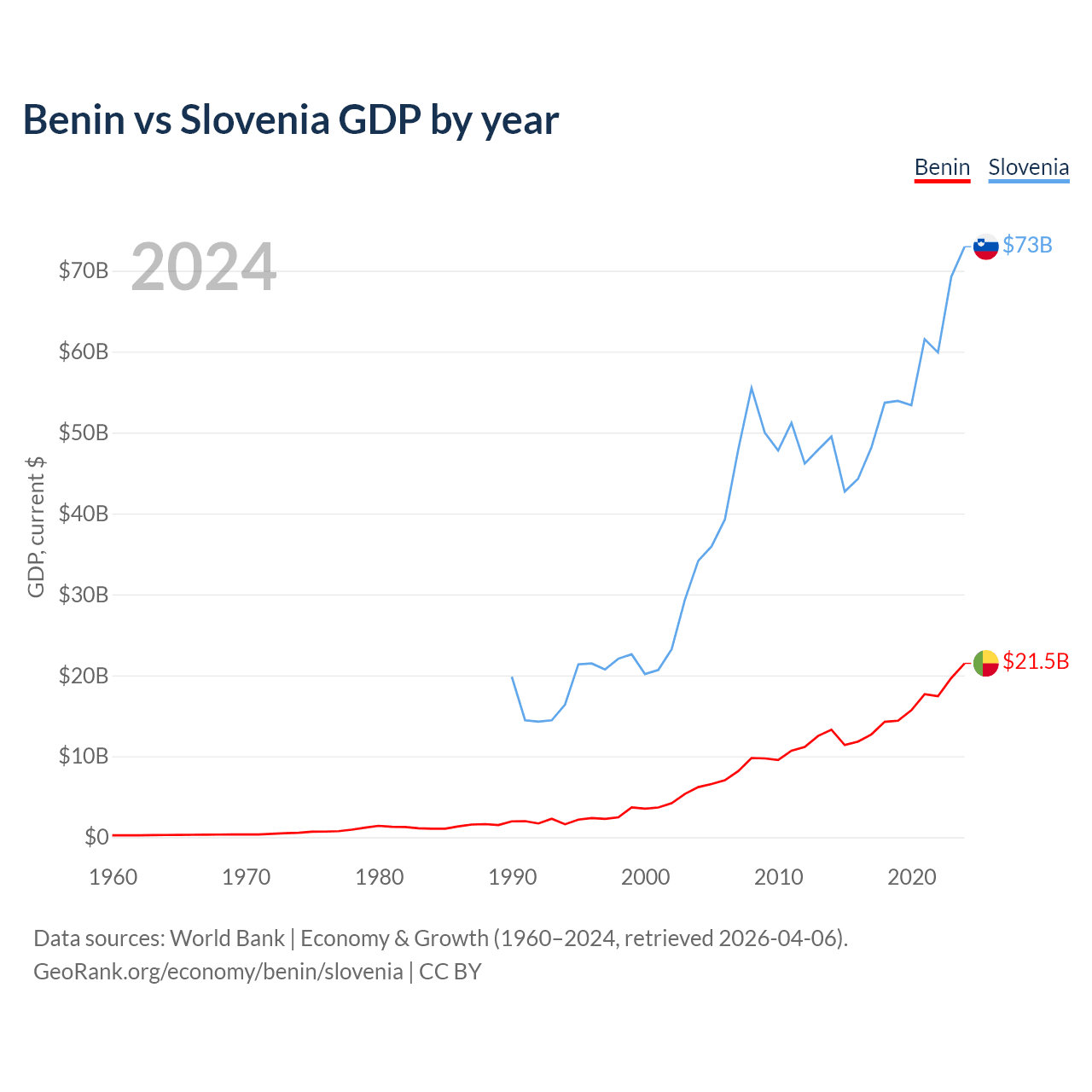 Benin vs Slovenia GDP by year