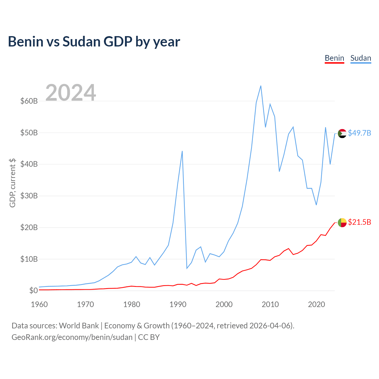 Benin vs Sudan GDP by year