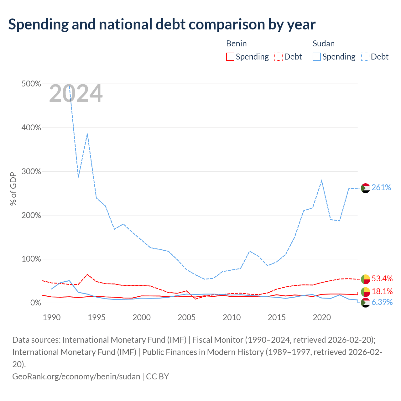 Benin has $11.5B in government debt (53.4% of GDP), compared to $130B (261.4% of GDP) in Sudan.