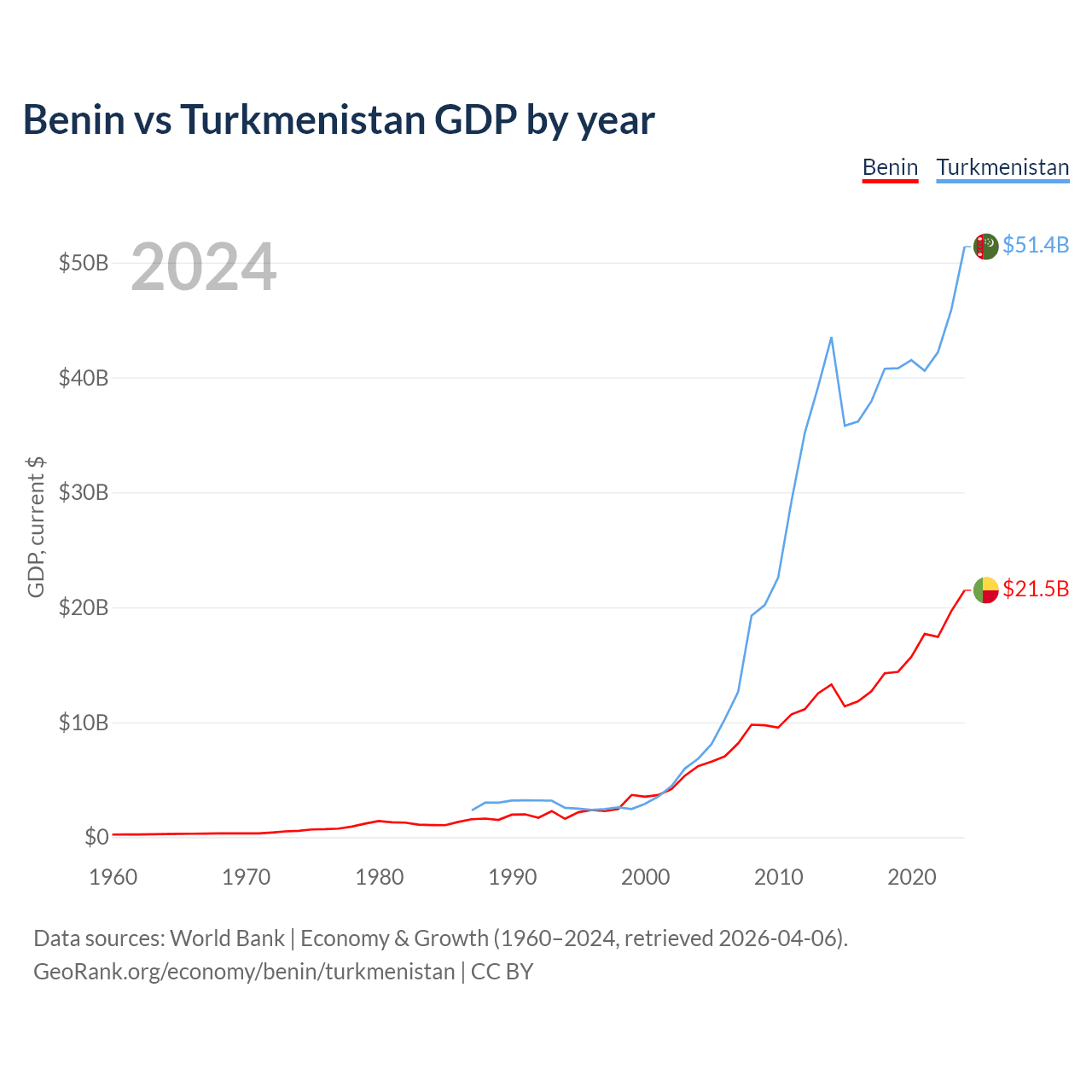 Benin vs Turkmenistan GDP by year