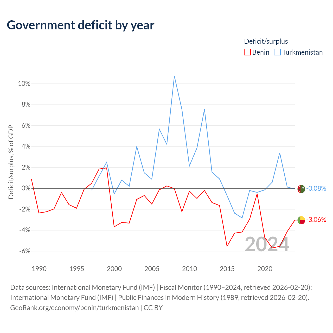 - International Monetary Fund (IMF) | Fiscal Monitor (1990–2024, retrieved 2026-02-20)