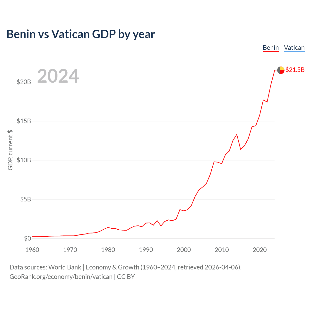 Benin vs Vatican GDP by year
