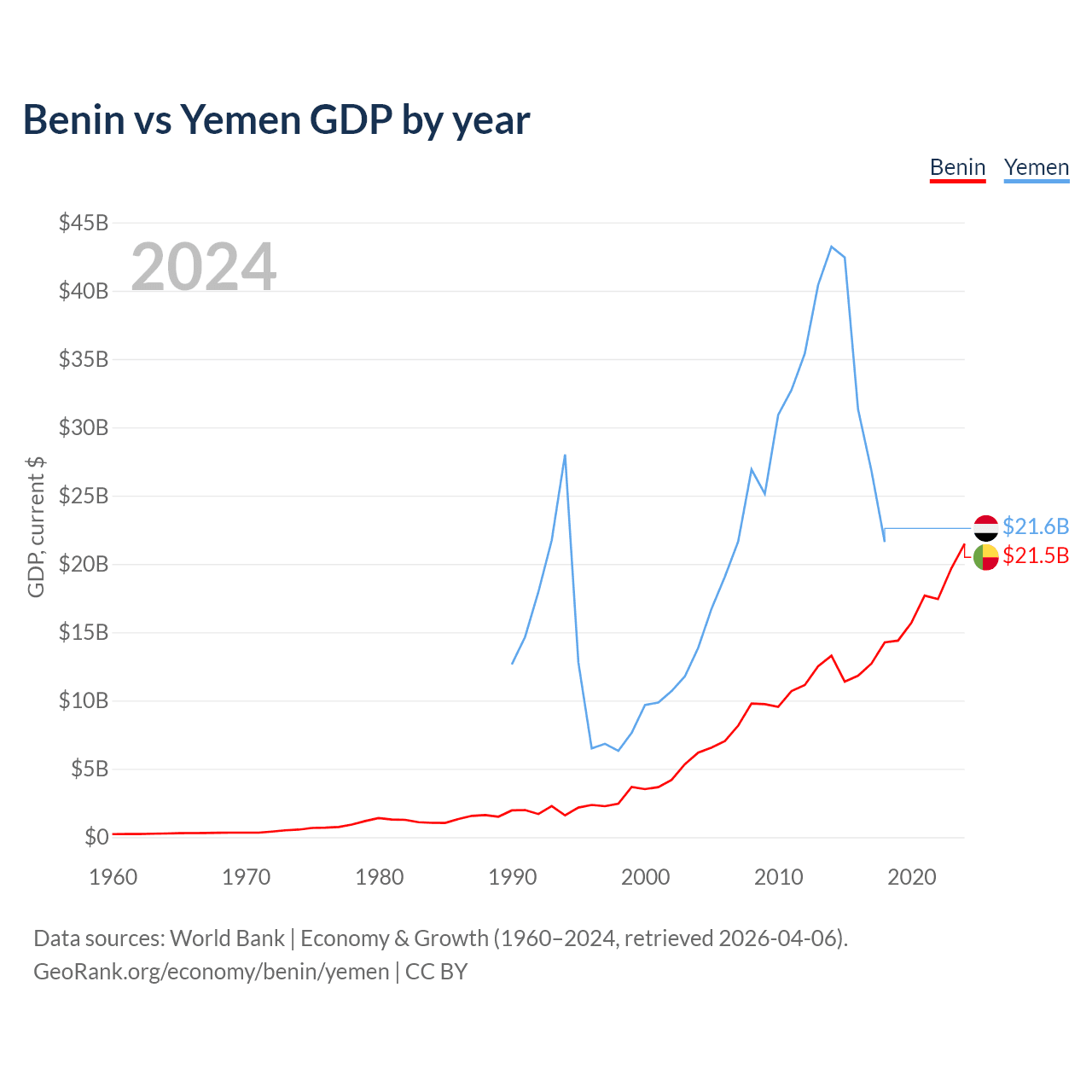 Benin vs Yemen GDP by year