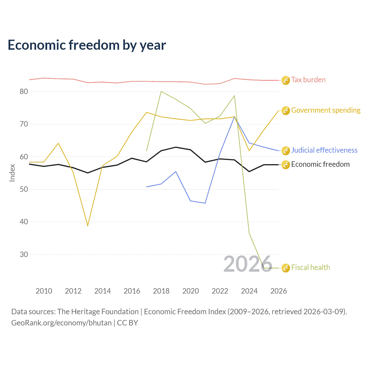 - The Heritage Foundation | Economic Freedom Index (2009–2026, retrieved 2026-03-09)