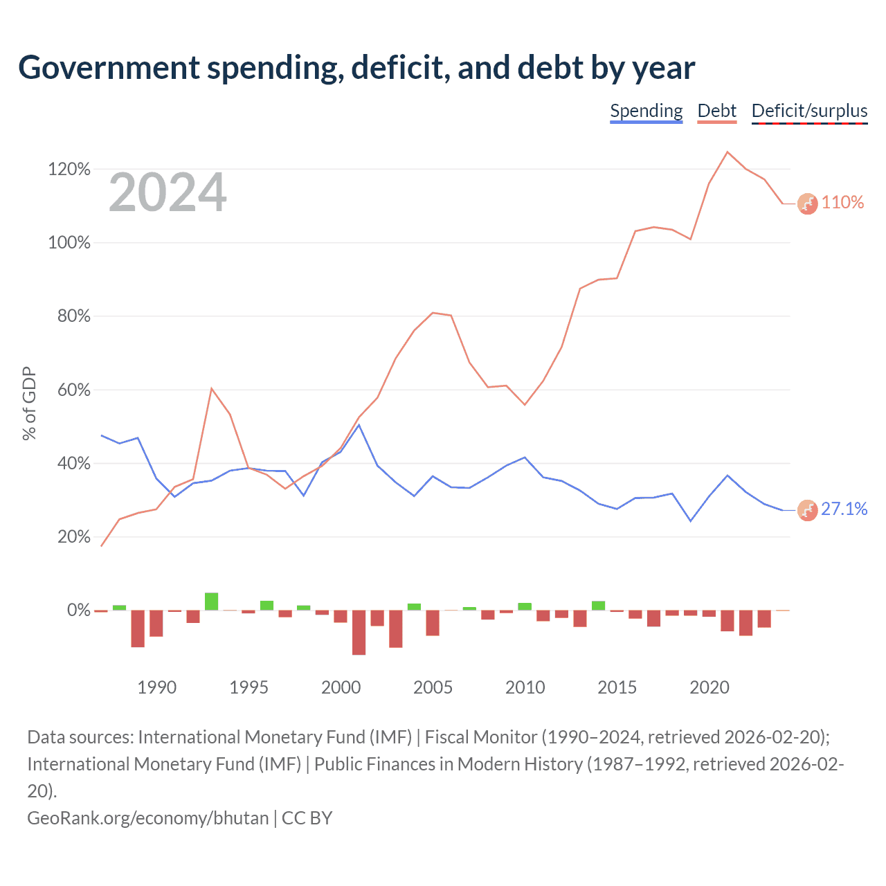 - International Monetary Fund (IMF) | Fiscal Monitor (1990–2024, retrieved 2026-02-20)