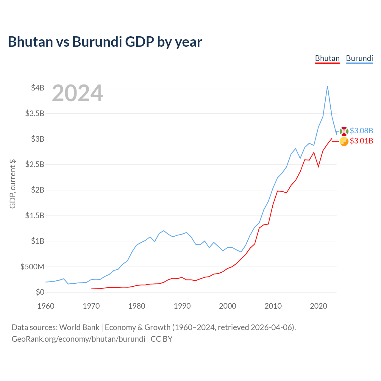 Bhutan vs Burundi GDP by year