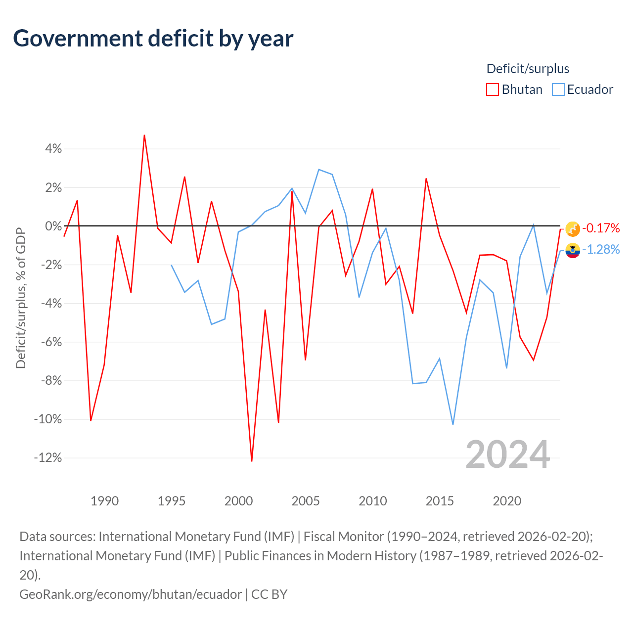 - International Monetary Fund (IMF) | Fiscal Monitor (1990–2024, retrieved 2026-02-20)