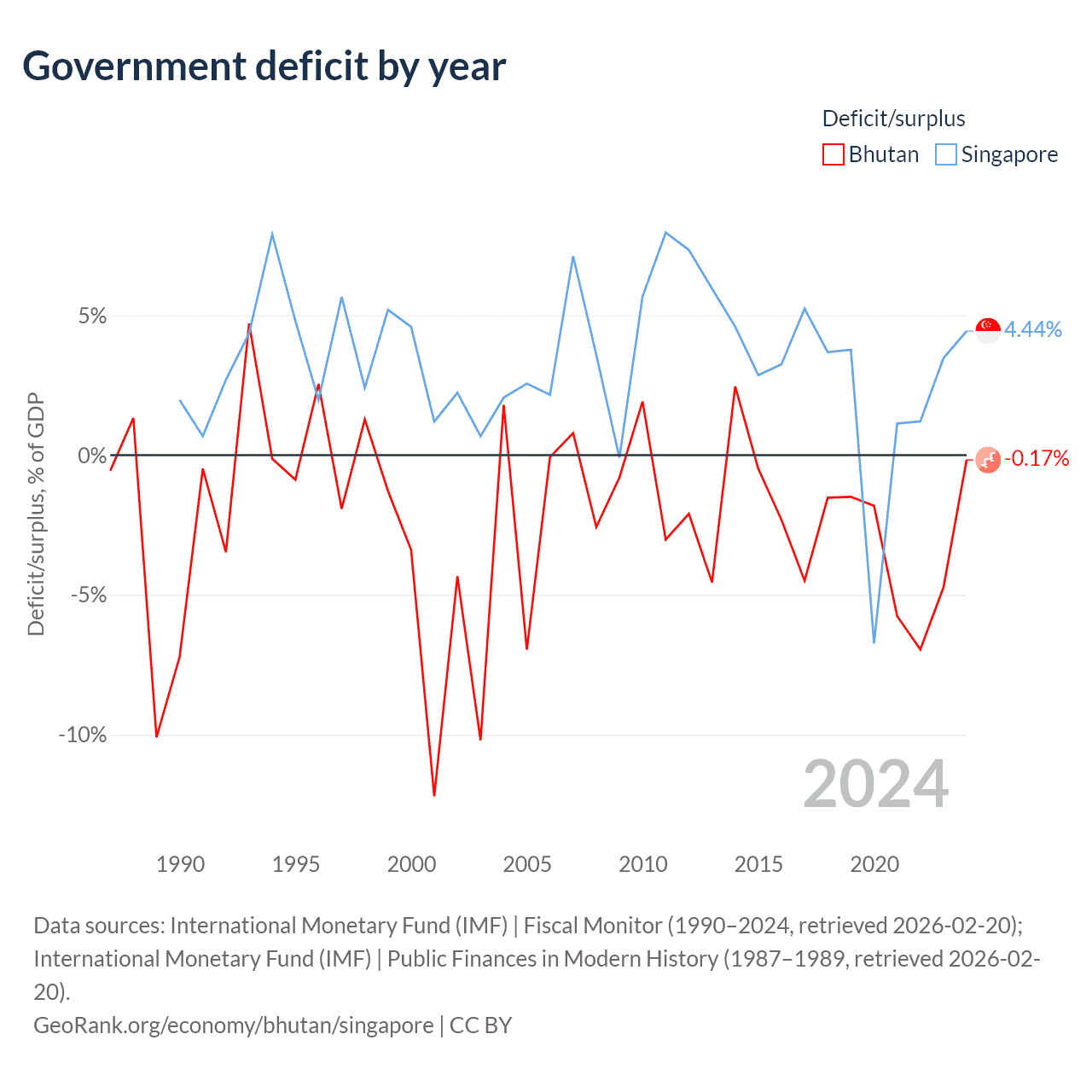 - International Monetary Fund (IMF) | Fiscal Monitor (1990–2024, retrieved 2026-02-20)