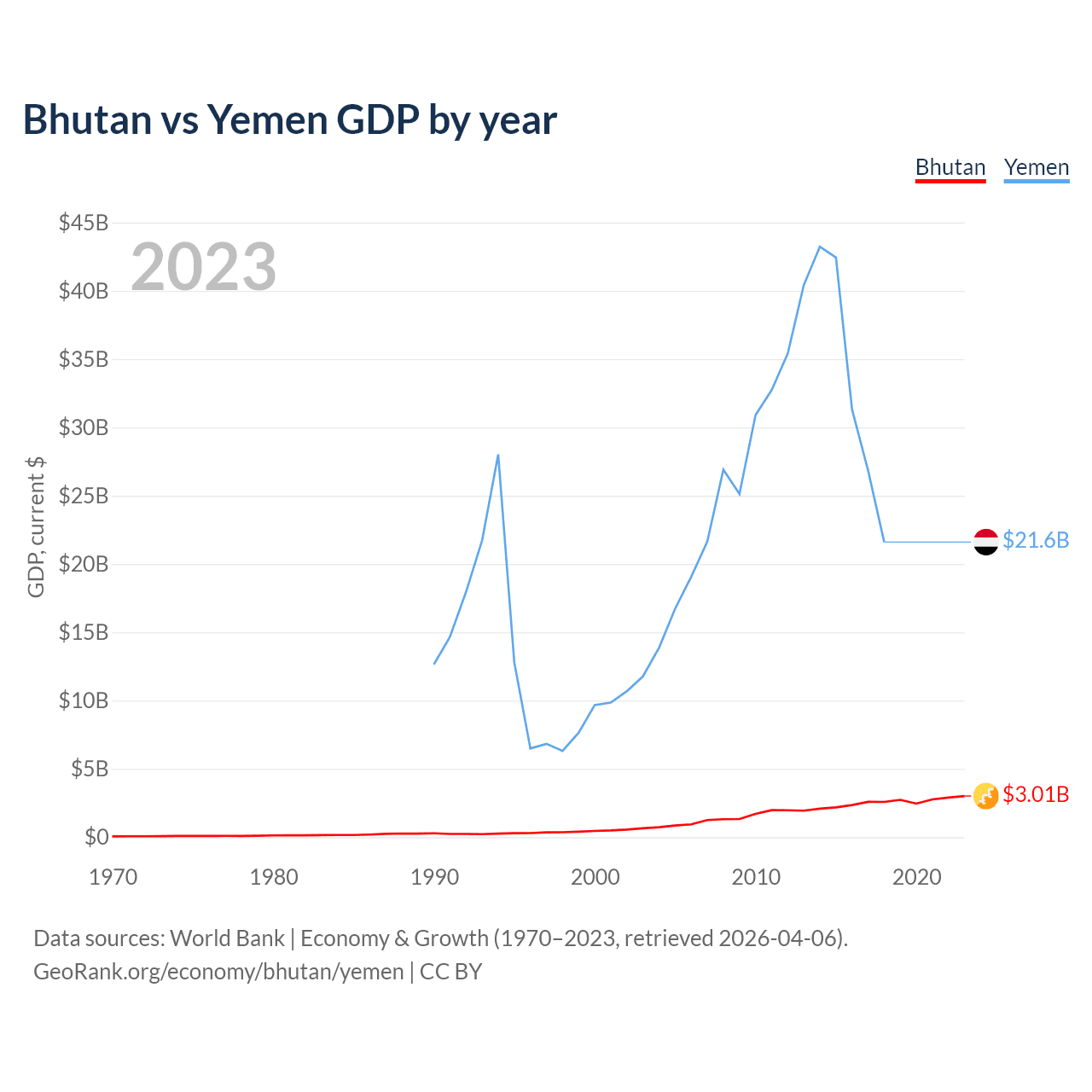 Bhutan vs Yemen GDP by year