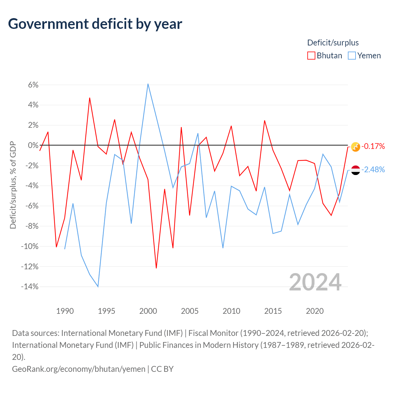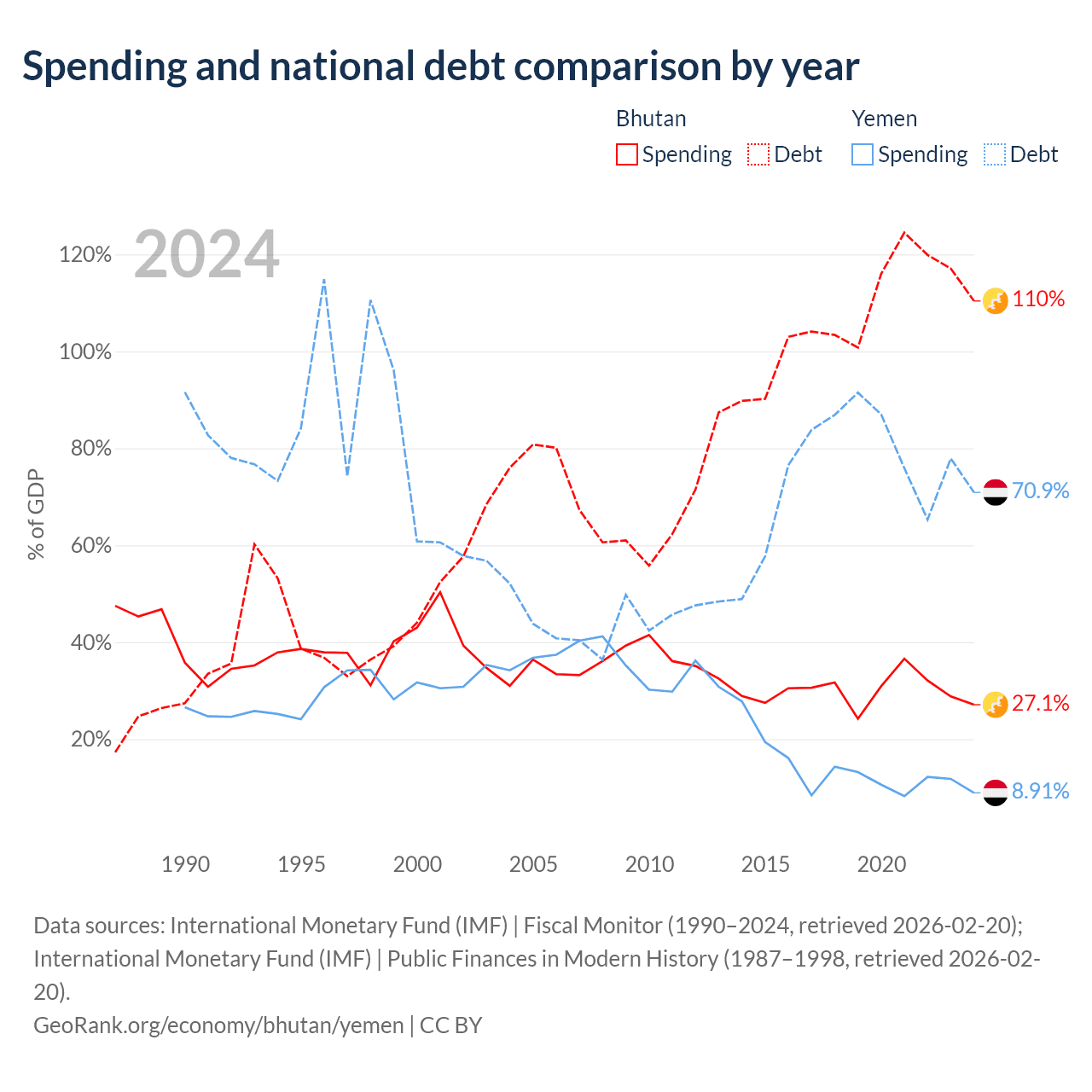 - International Monetary Fund (IMF) | Fiscal Monitor (1990–2024, retrieved 2026-02-20)
