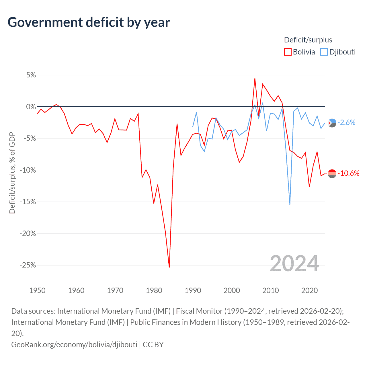 - International Monetary Fund (IMF) | Public Finances in Modern History (1950–2008, retrieved 2026-02-20)