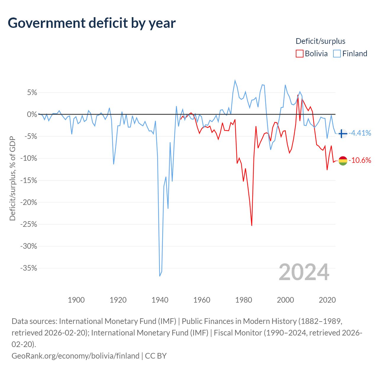 - International Monetary Fund (IMF) | Public Finances in Modern History (1882–1999, retrieved 2026-02-20)