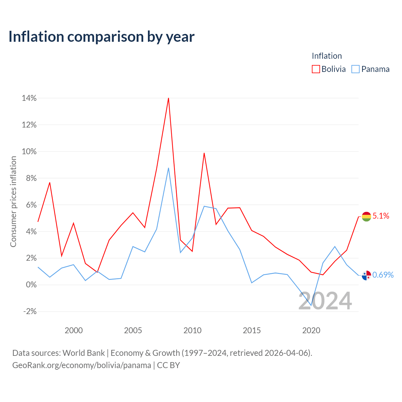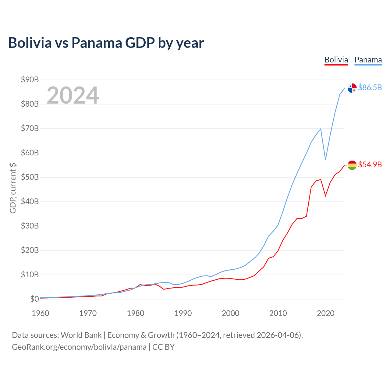 Data sources: World Bank | Economy & Growth (1960–2024, retrieved 2026-04-06).