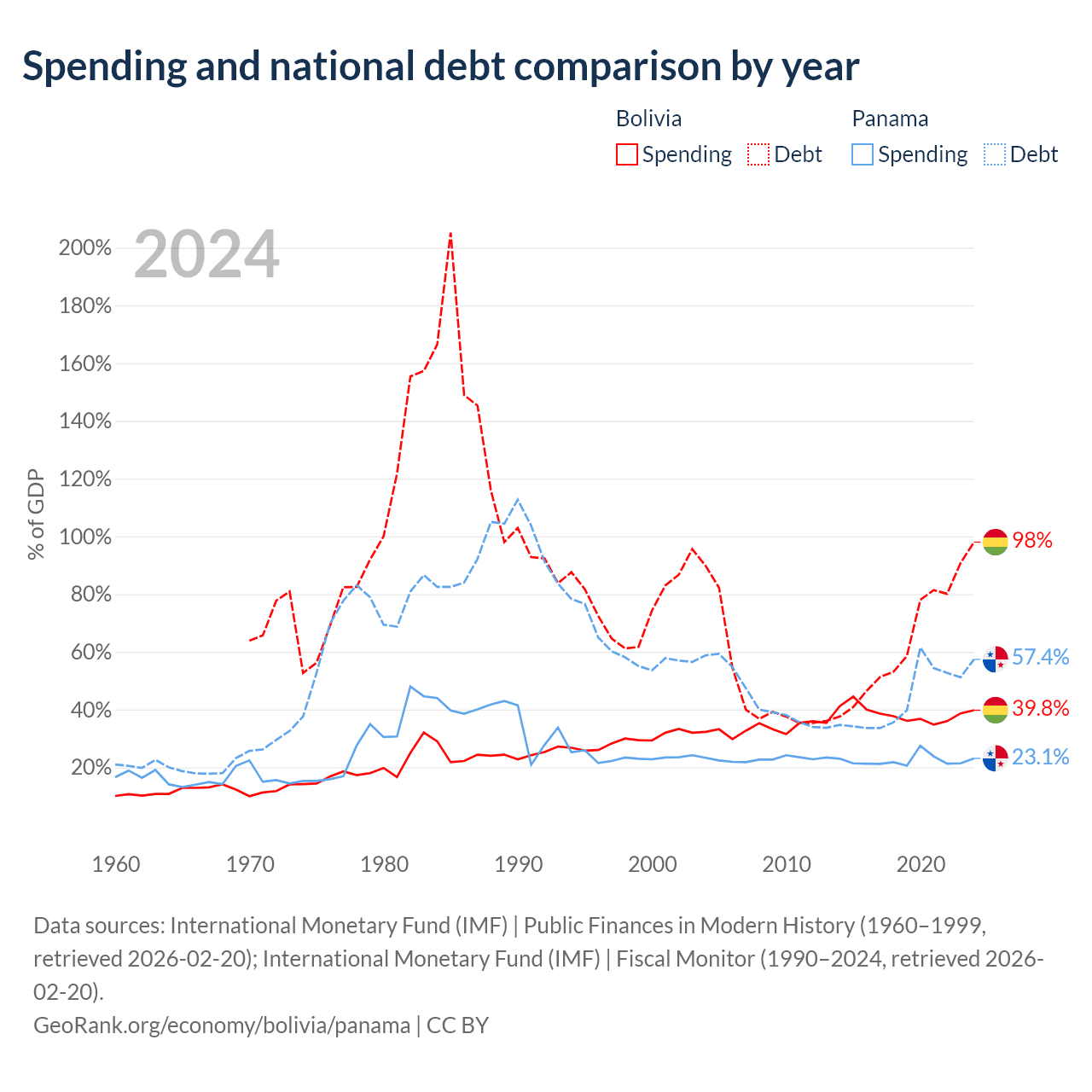 Bolivia has $53.8B in government debt (98% of GDP), compared to $49.6B (57.4% of GDP) in Panama.