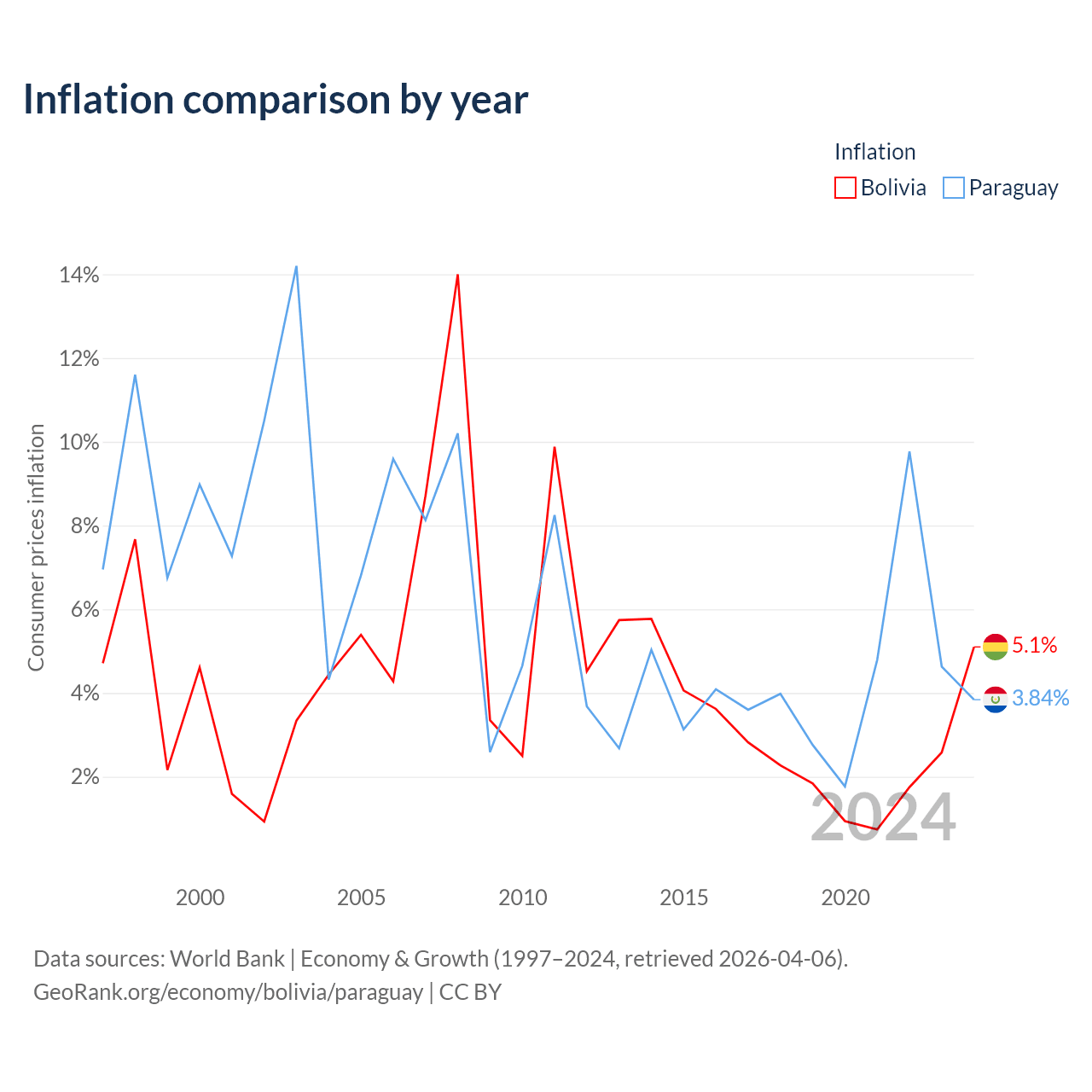 Data sources: World Bank | Economy & Growth (1960–2024, retrieved 2026-04-06).