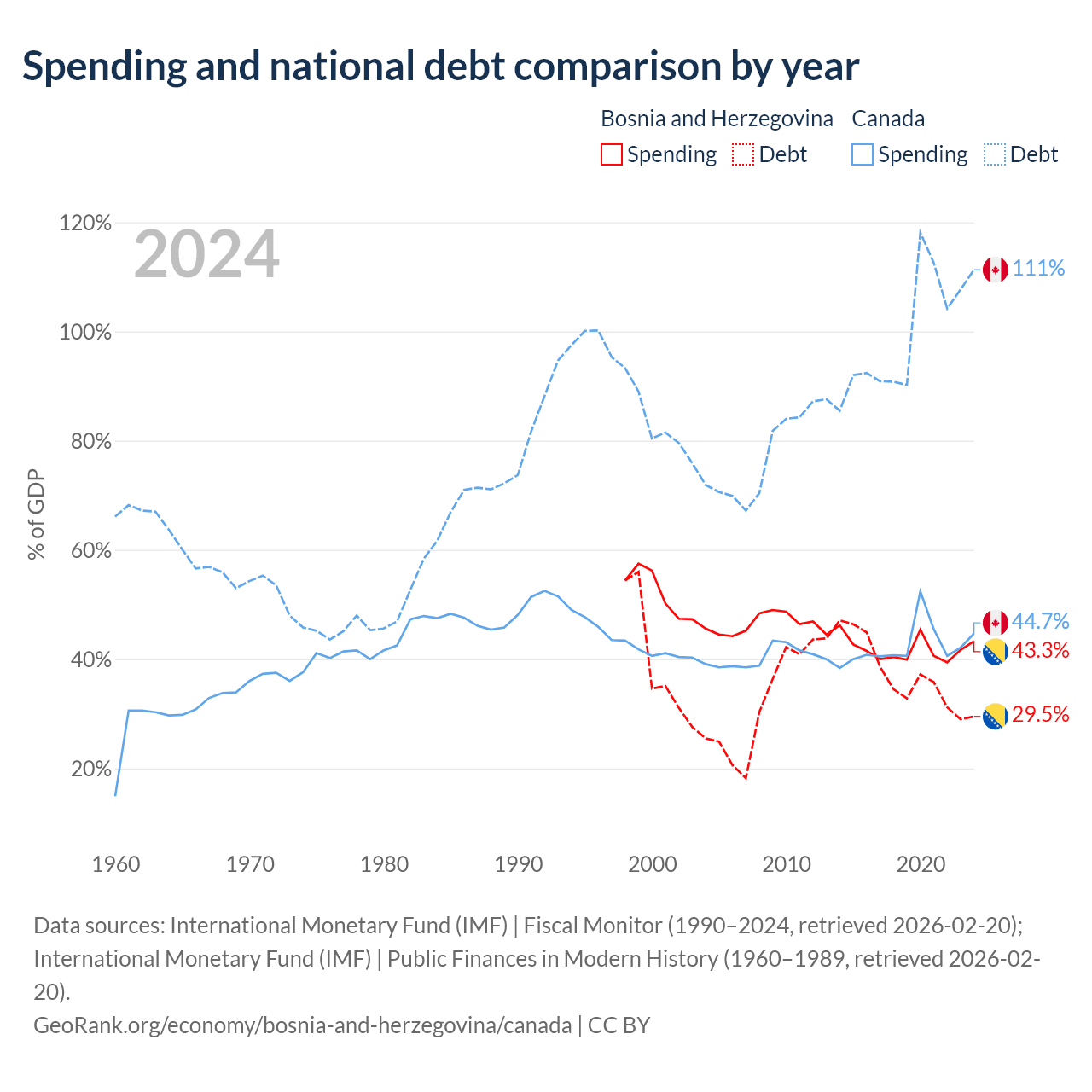 Bosnia and Herzegovina has $8.74B in government debt (29.5% of GDP), compared to $2.5T (111.3% of GDP) in Canada.