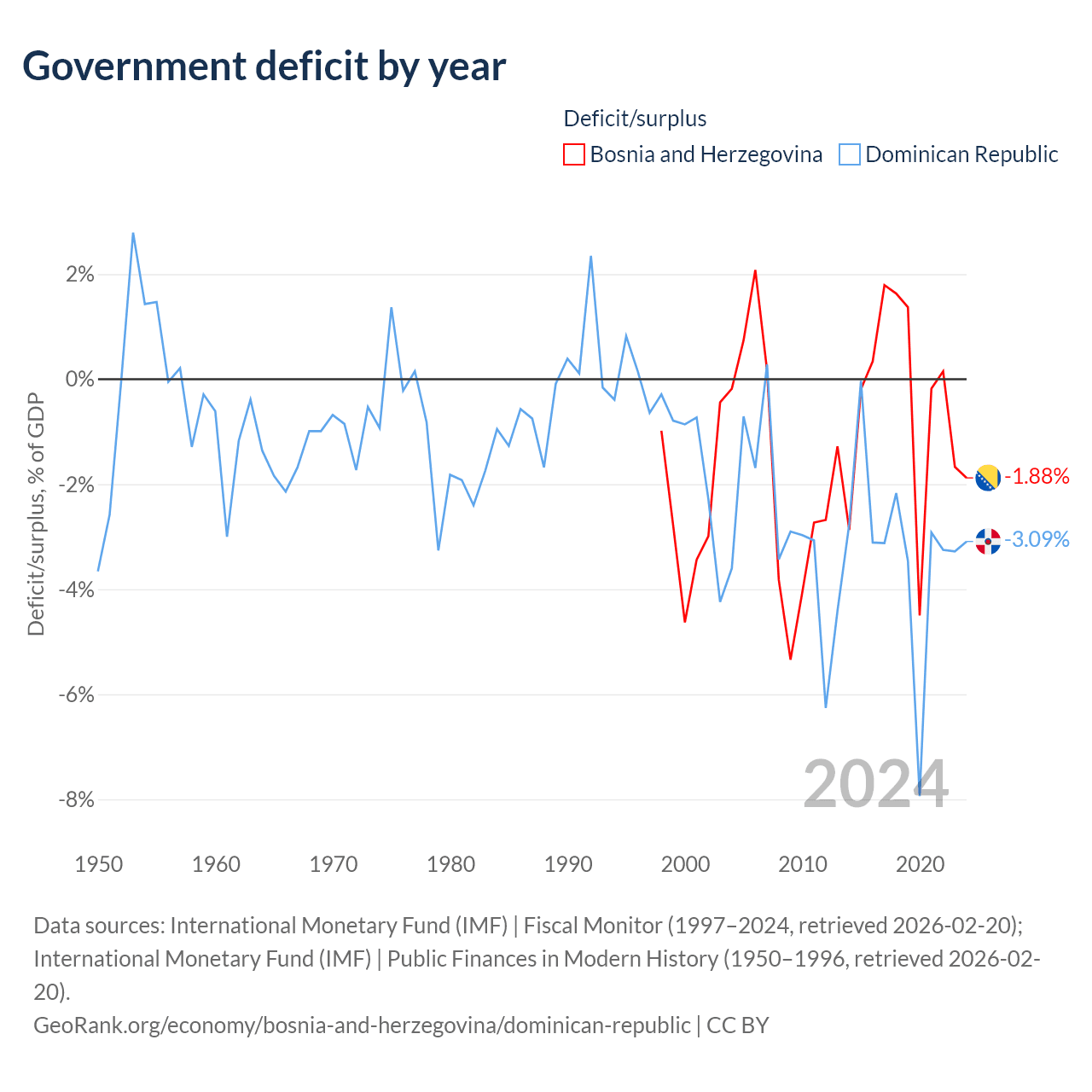 - International Monetary Fund (IMF) | Public Finances in Modern History (1950–1996, retrieved 2026-02-20)