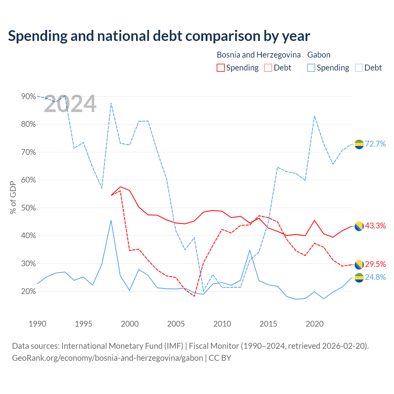 - International Monetary Fund (IMF) | Fiscal Monitor (1990–2024, retrieved 2026-02-20)