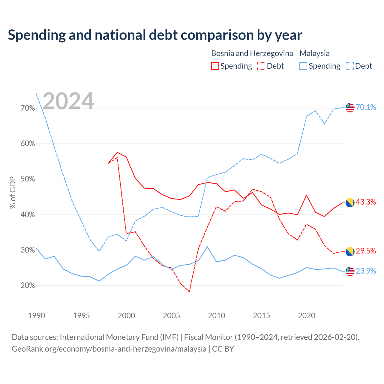 - International Monetary Fund (IMF) | Fiscal Monitor (1990–2024, retrieved 2026-02-20)