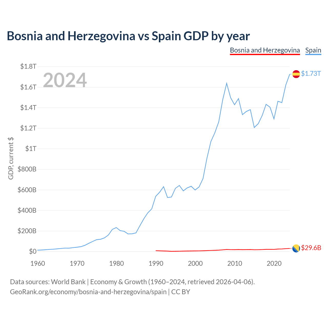 Bosnia and Herzegovina vs Spain GDP by year