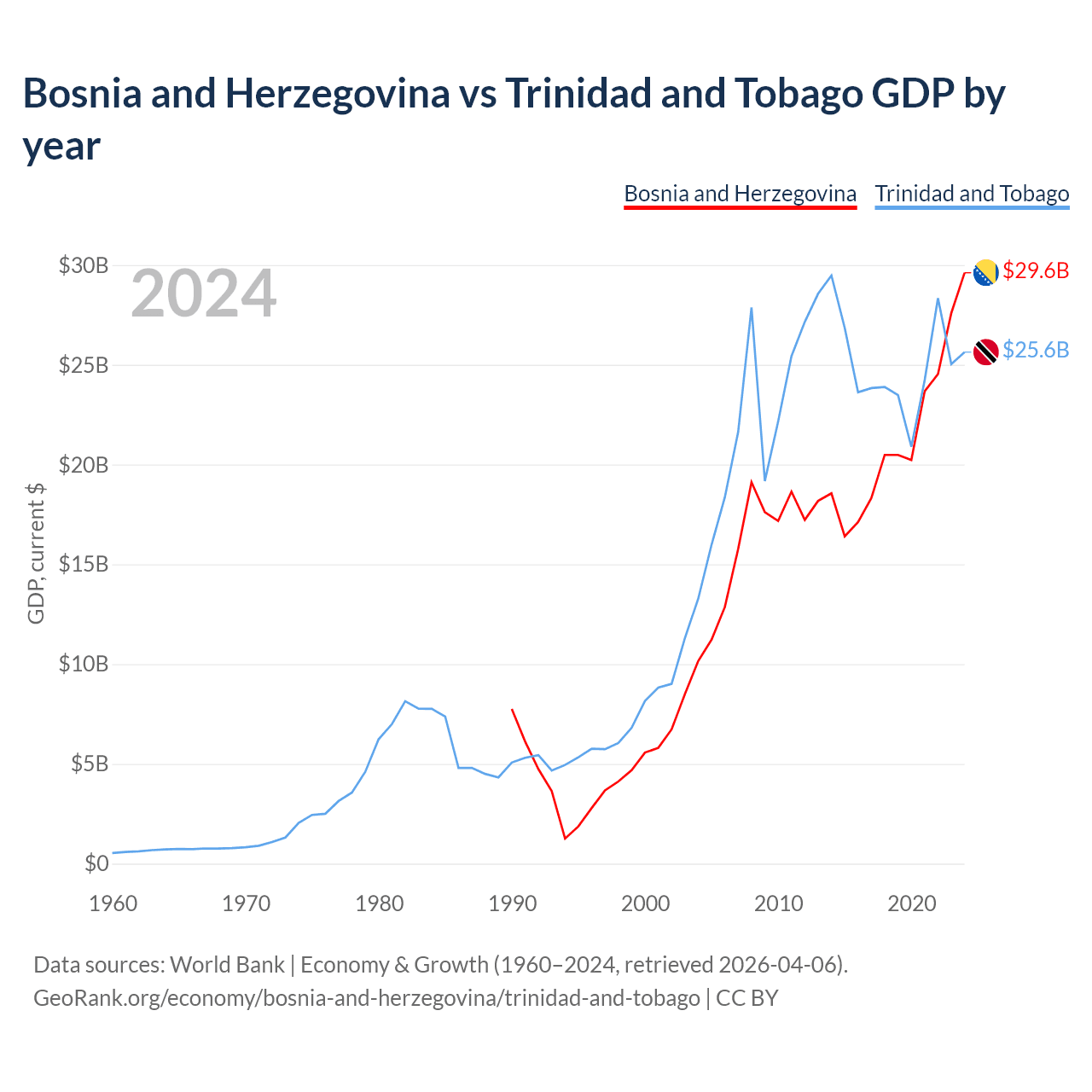 Bosnia and Herzegovina vs Trinidad and Tobago GDP by year