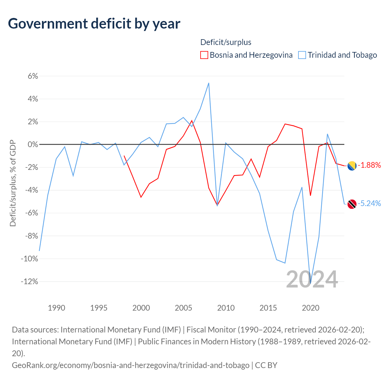 - International Monetary Fund (IMF) | Fiscal Monitor (1990–2024, retrieved 2026-02-20)