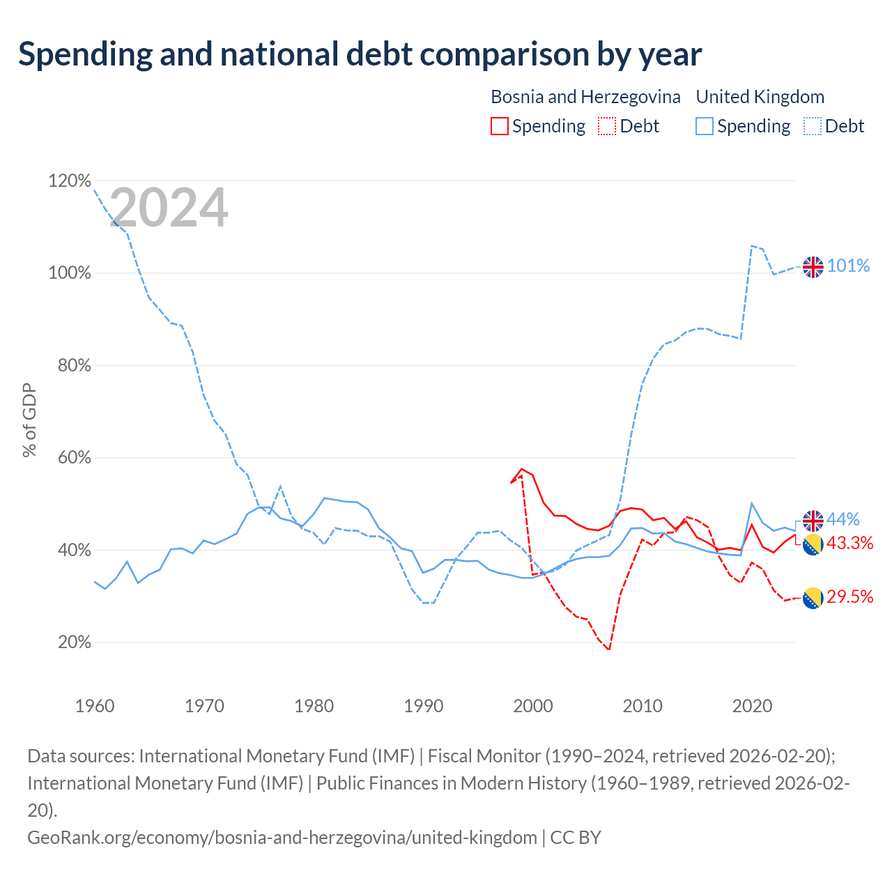 Bosnia and Herzegovina has $8.74B in government debt (29.5% of GDP), compared to $3.73T (101.2% of GDP) in the United Kingdom.