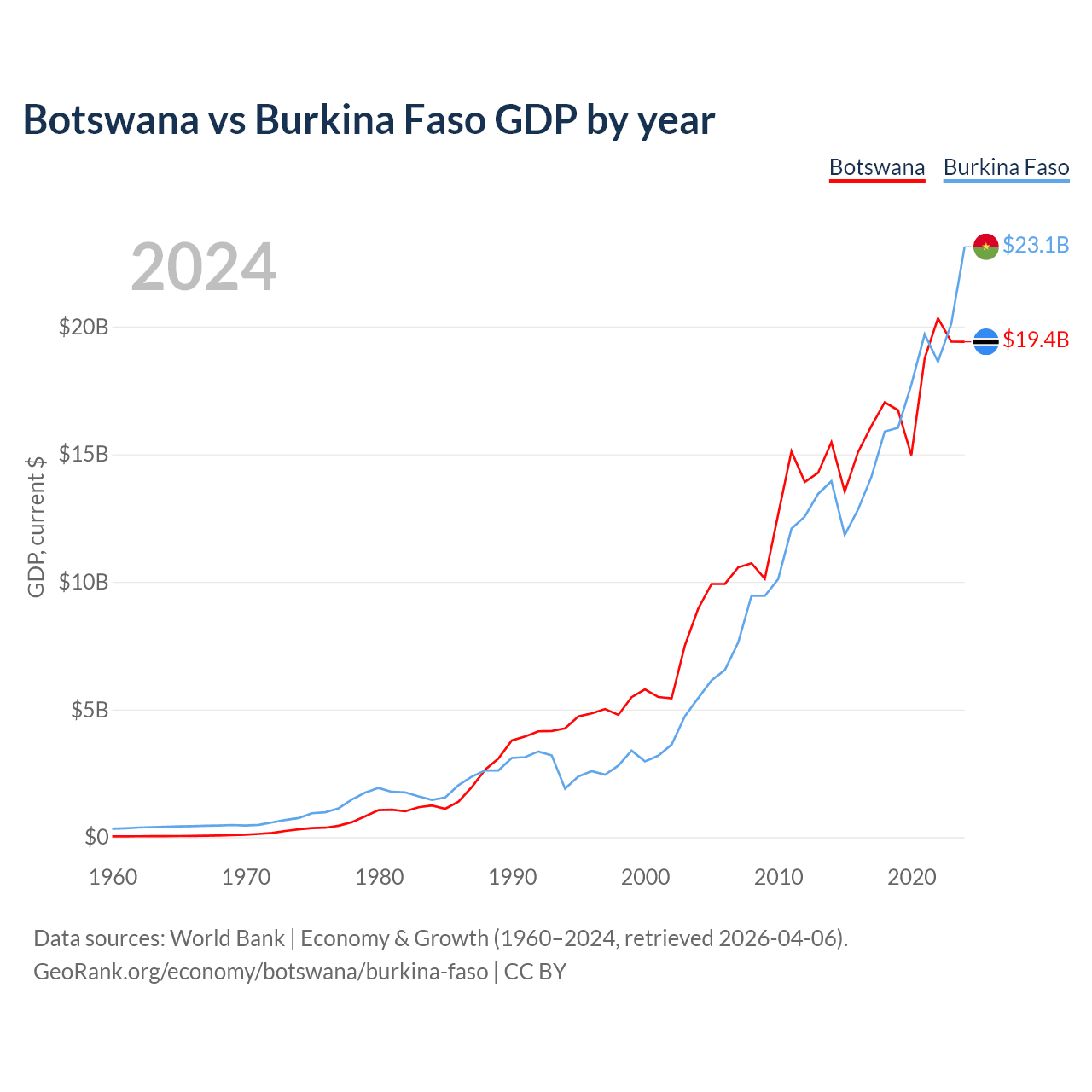 Botswana vs Burkina Faso GDP by year