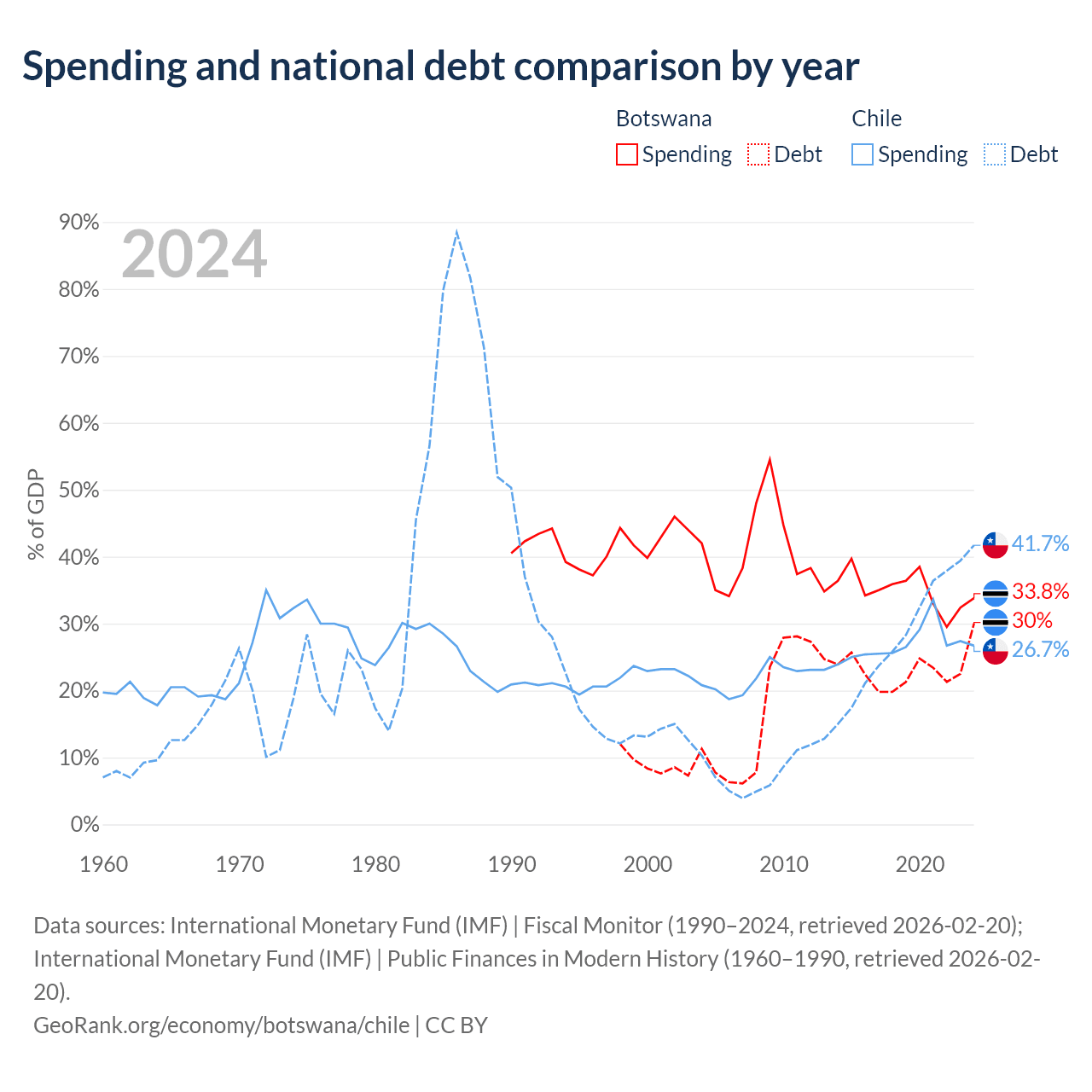 Botswana has $5.82B in government debt (30% of GDP), compared to $138B (41.7% of GDP) in Chile.