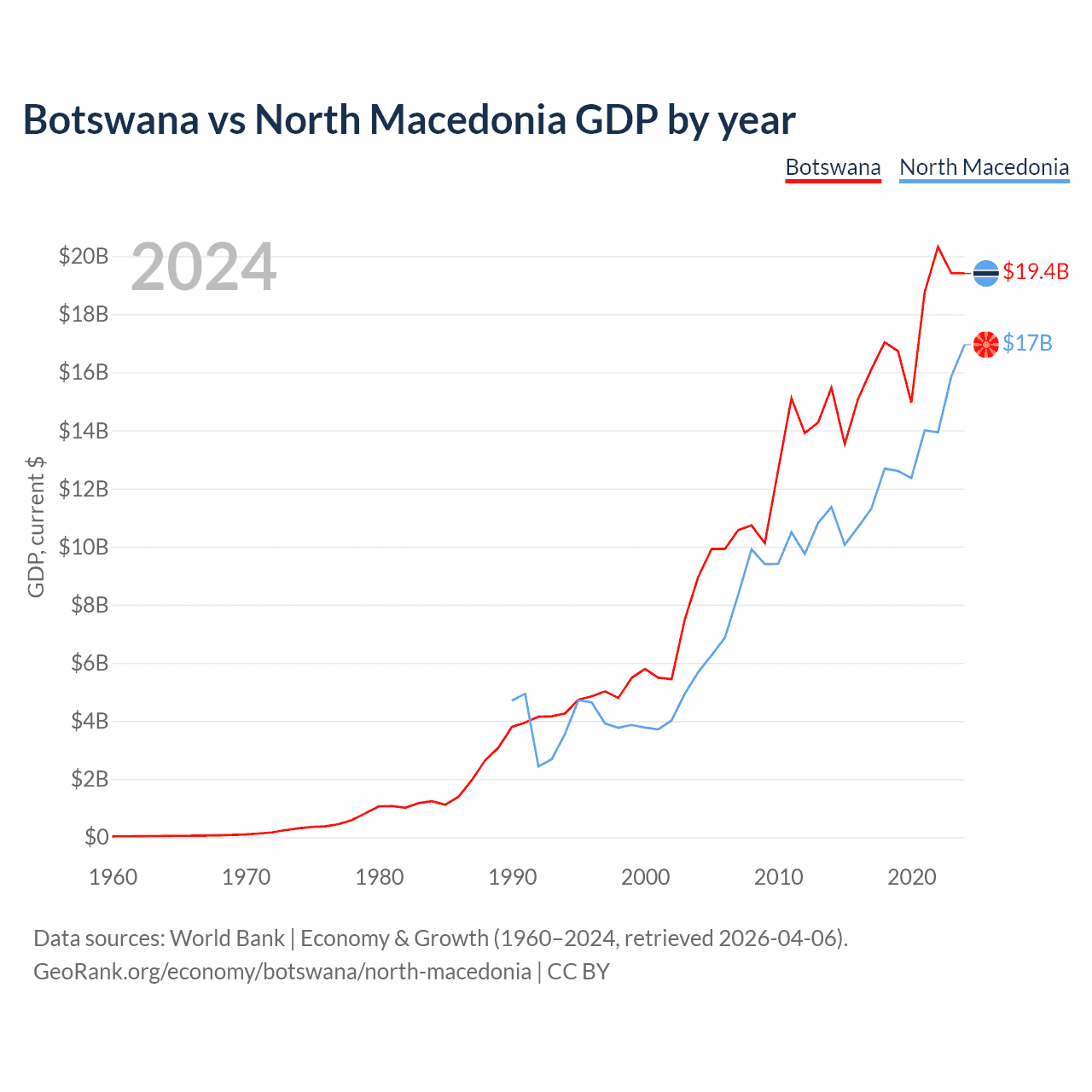 Botswana vs North Macedonia GDP by year