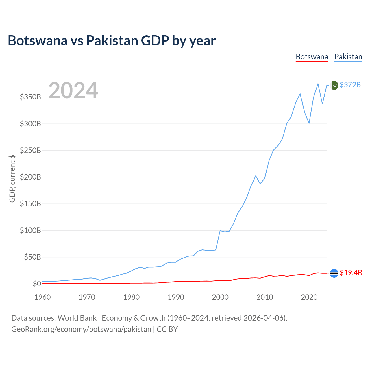 Botswana vs Pakistan GDP by year