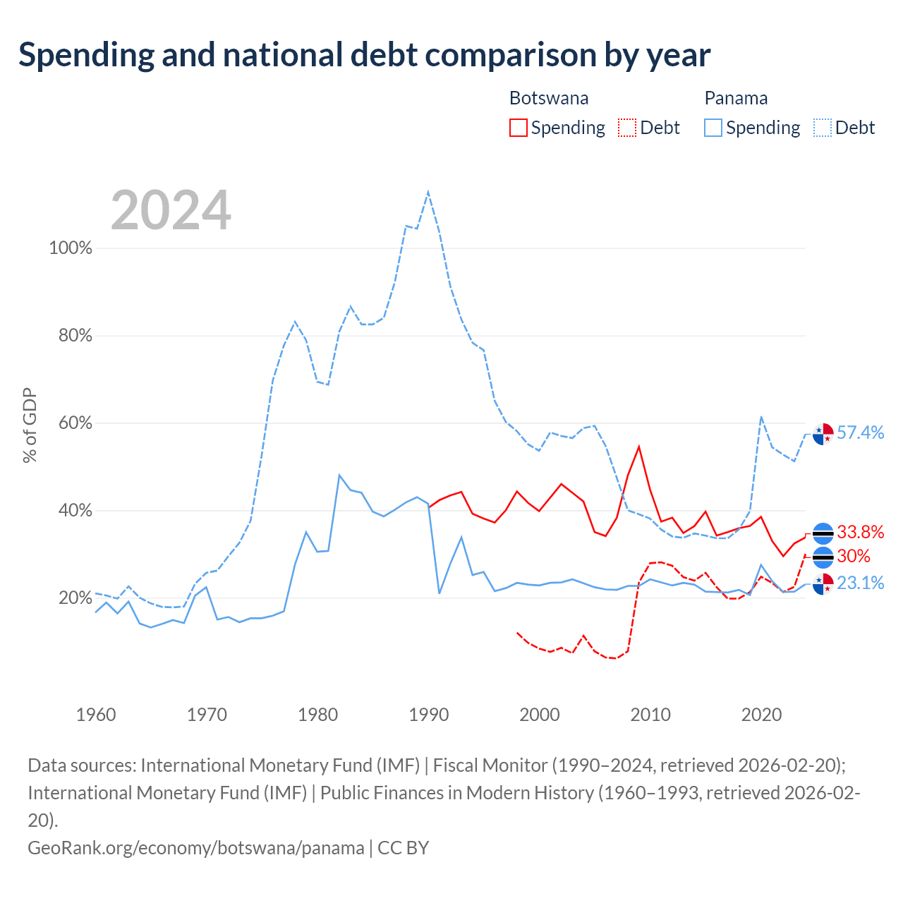 Botswana has $5.82B in government debt (30% of GDP), compared to $49.6B (57.4% of GDP) in Panama.