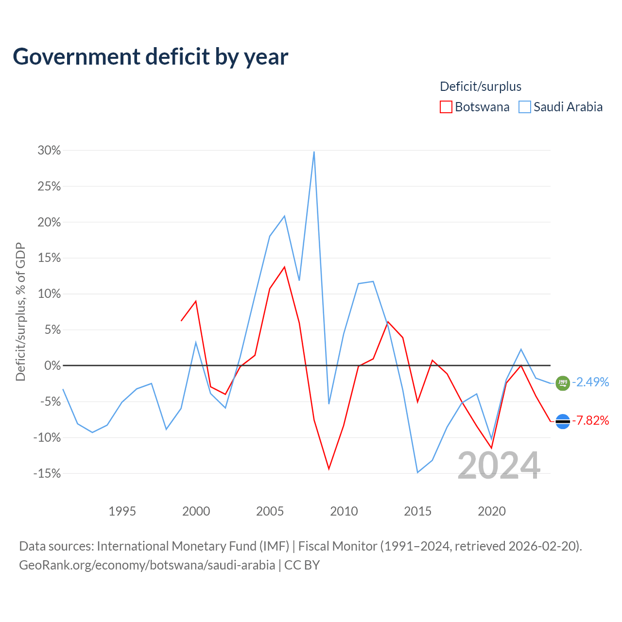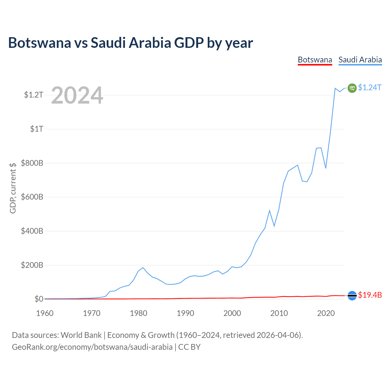 Botswana vs Saudi Arabia GDP by year