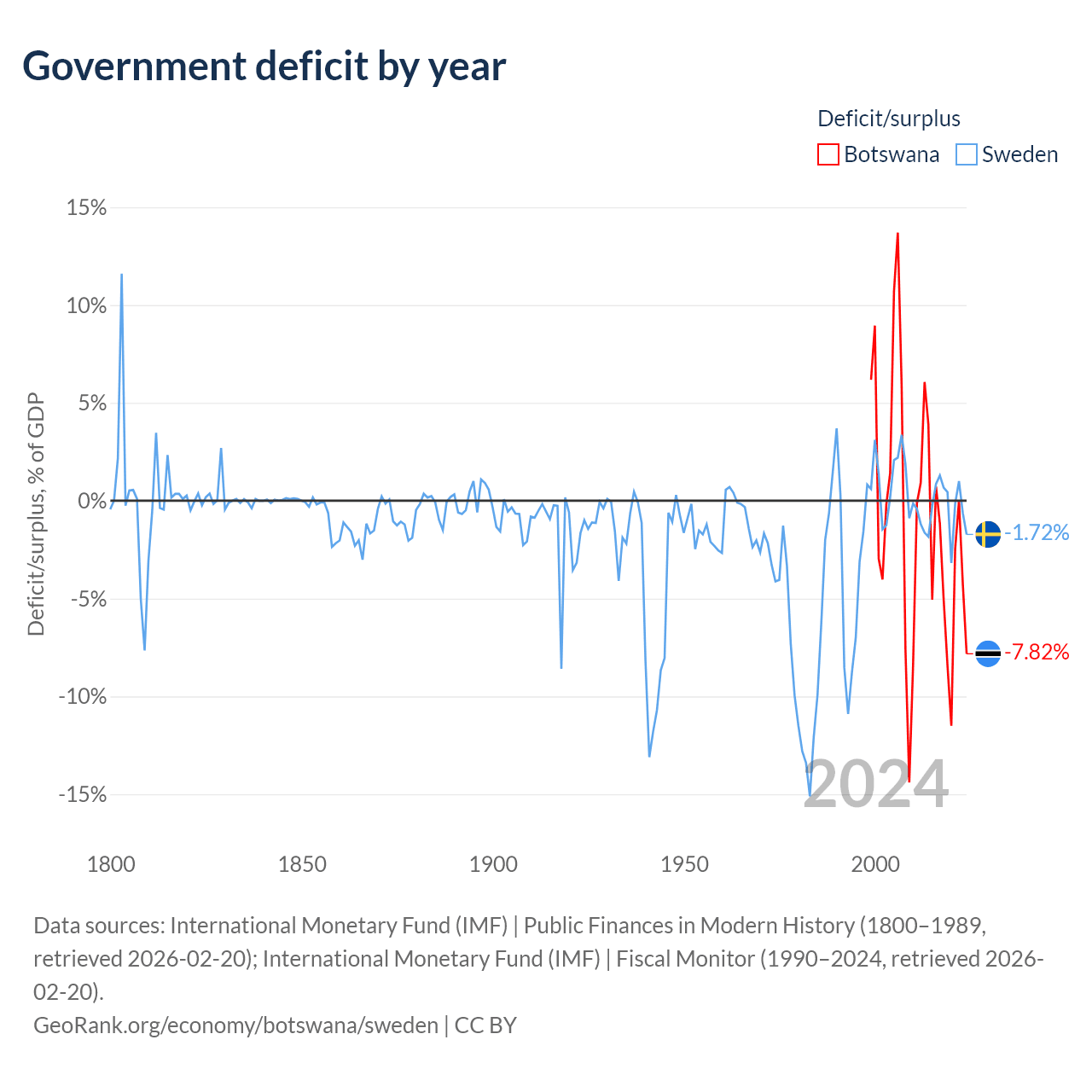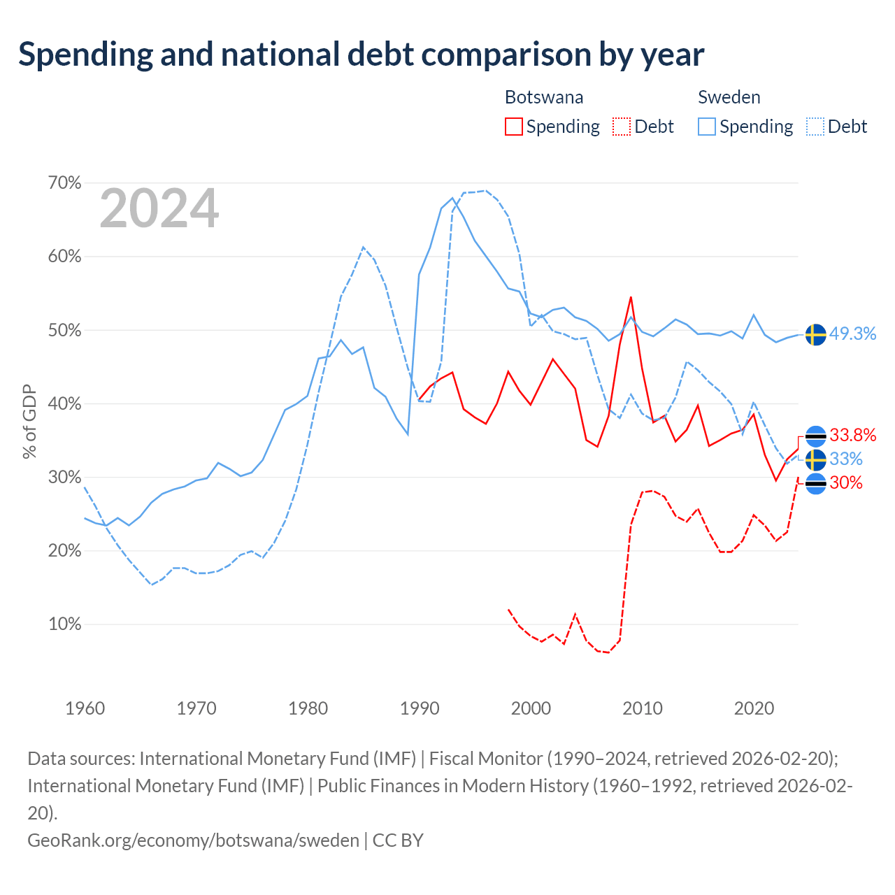 Botswana has $5.82B in government debt (30% of GDP), compared to $199B (33% of GDP) in Sweden.