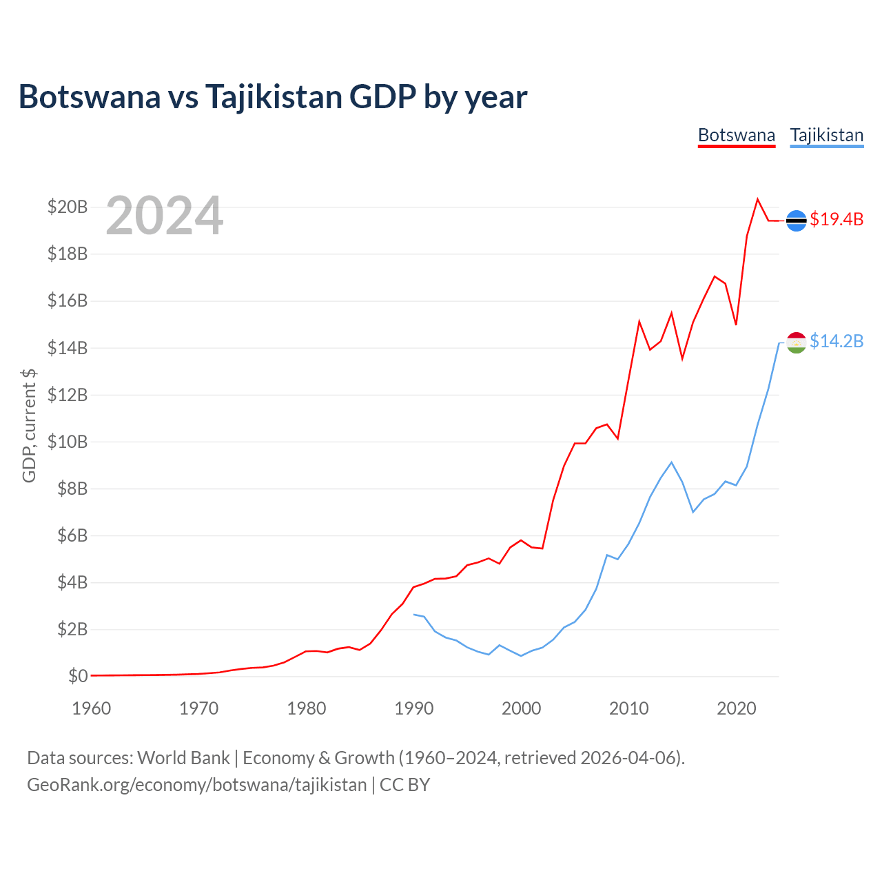 Botswana vs Tajikistan GDP by year