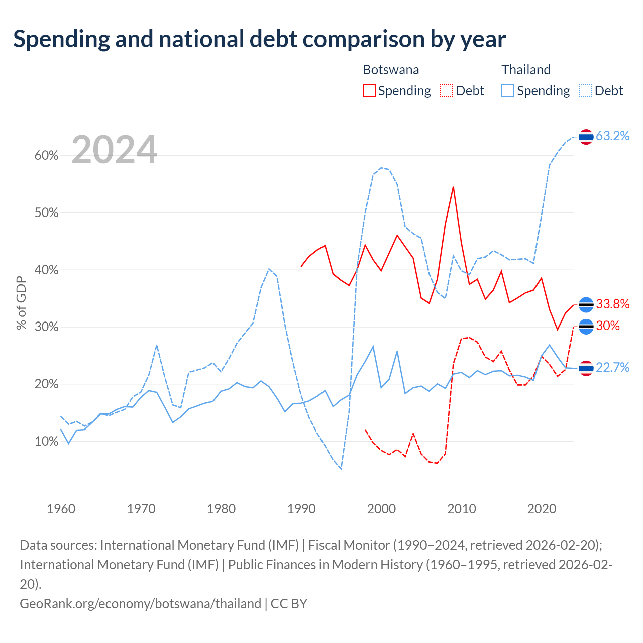 Botswana has $5.82B in government debt (30% of GDP), compared to $333B (63.2% of GDP) in Thailand.