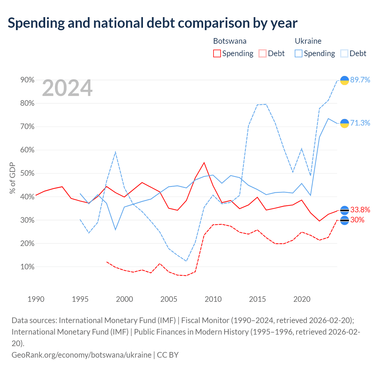 Botswana has $5.82B in government debt (30% of GDP), compared to $171B (89.7% of GDP) in Ukraine.